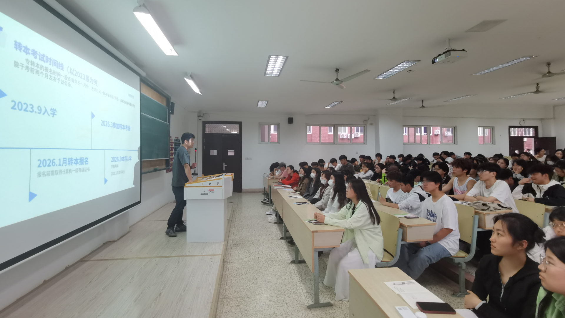 首先,在转本经历方面。他分享不仅需要努力学习、刻苦钻研,还需要给自己制定详细的复习计划,认真严格的执行。尤其是重点课程,同学们应该课前提前预习;上课时,认真听讲,不懂的地方及时向老师请教;课下利用一些手机app,再进一步巩固学习。同时为同学们厘清必考项目及各类考试的时间线,分享了自己进行时间管理的经验。生活方面,他还积极勤工俭学,发现自己的兴趣点,培养沟通技能,积累实践经验。目标总是一步一步的实现的,在设定考研目标后,他对自己有清醒的定位,他说他清楚地知道自己不是聪明的那一个,但一定是努力的那一个,所以无论结果如何他都全力以赴,不留遗憾,这也是他成功的秘诀吧。