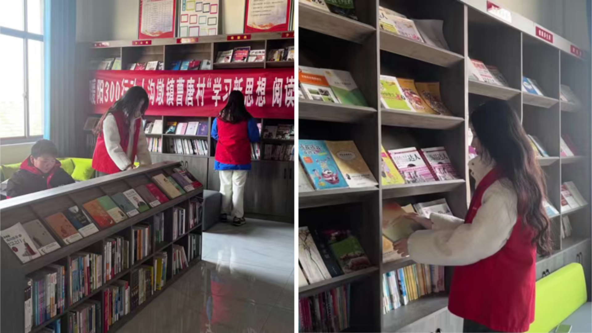 陈欣怡同学来到盐城市阜宁县曹唐村,加入了“学习新思想,阅读颂辉煌”读书活动志愿服务工作。她的主要职责包括图书整理、指导读者使用图书查询系统以及为读者提供其他必要帮助。陈同学表示,通过这次志愿服务,不仅提高了自己的组织和管理能力,还强化了对图书管理员工作的理解和尊重。