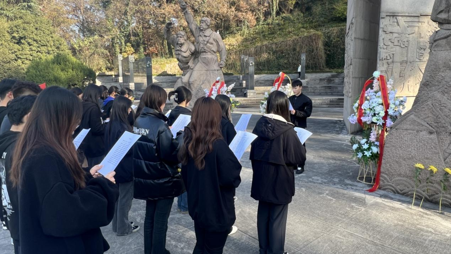 随后,同学们前往抗日航空纪念碑,向牺牲的烈士们敬献花篮,伫立在刻有革命烈士姓名的墓碑前,同学们深深默哀,表达对烈士们的哀思。