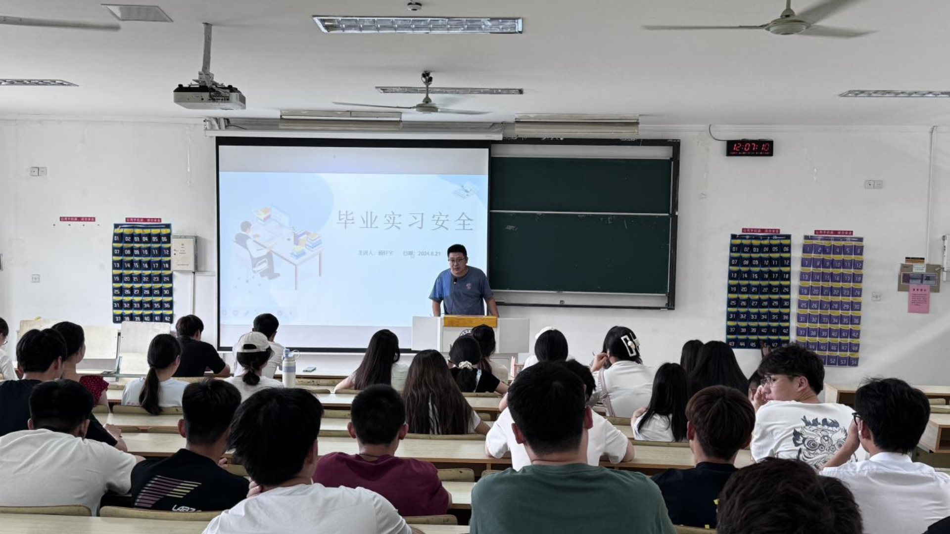 会议由顾轩宇老师主持,他首先强调了毕业前安全工作的重要性,并指出:“在即将步入社会、迎接新生活的关键时刻,同学们的安全意识不能松懈。我们必须做到警钟长鸣,确保每一位同学都能平安度过实习和假期。”
