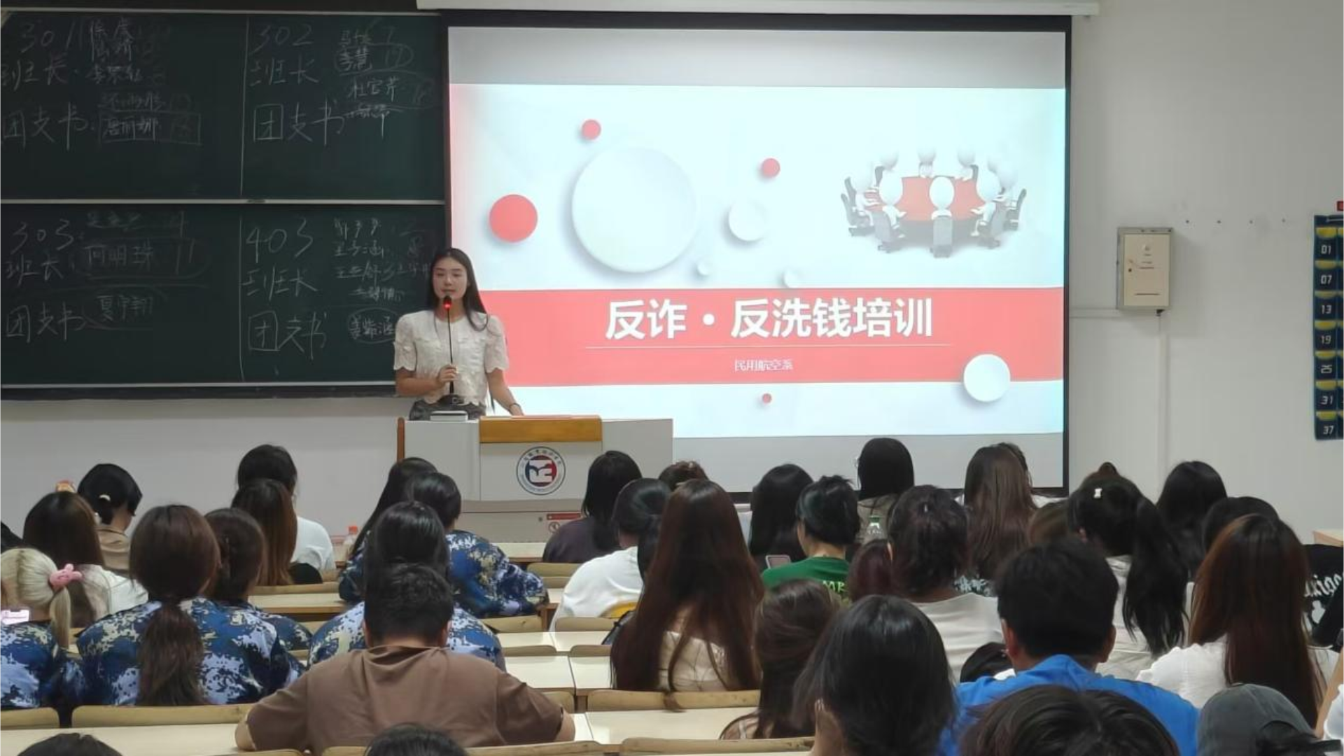 除开展班级班委竞聘以外,民航系坚持对学生开展常态化安全教育。此次我系利用班会时间,开展新生反诈反洗钱培训,期间通过生动的案例和详细的讲解,向同学们介绍了各种常见的诈骗手段,如网络诈骗、电话诈骗等,并传授了防范诈骗的方法和技巧。同学们认真聆听,积极提问,纷纷表示要提高警惕,远离诈骗陷阱。
