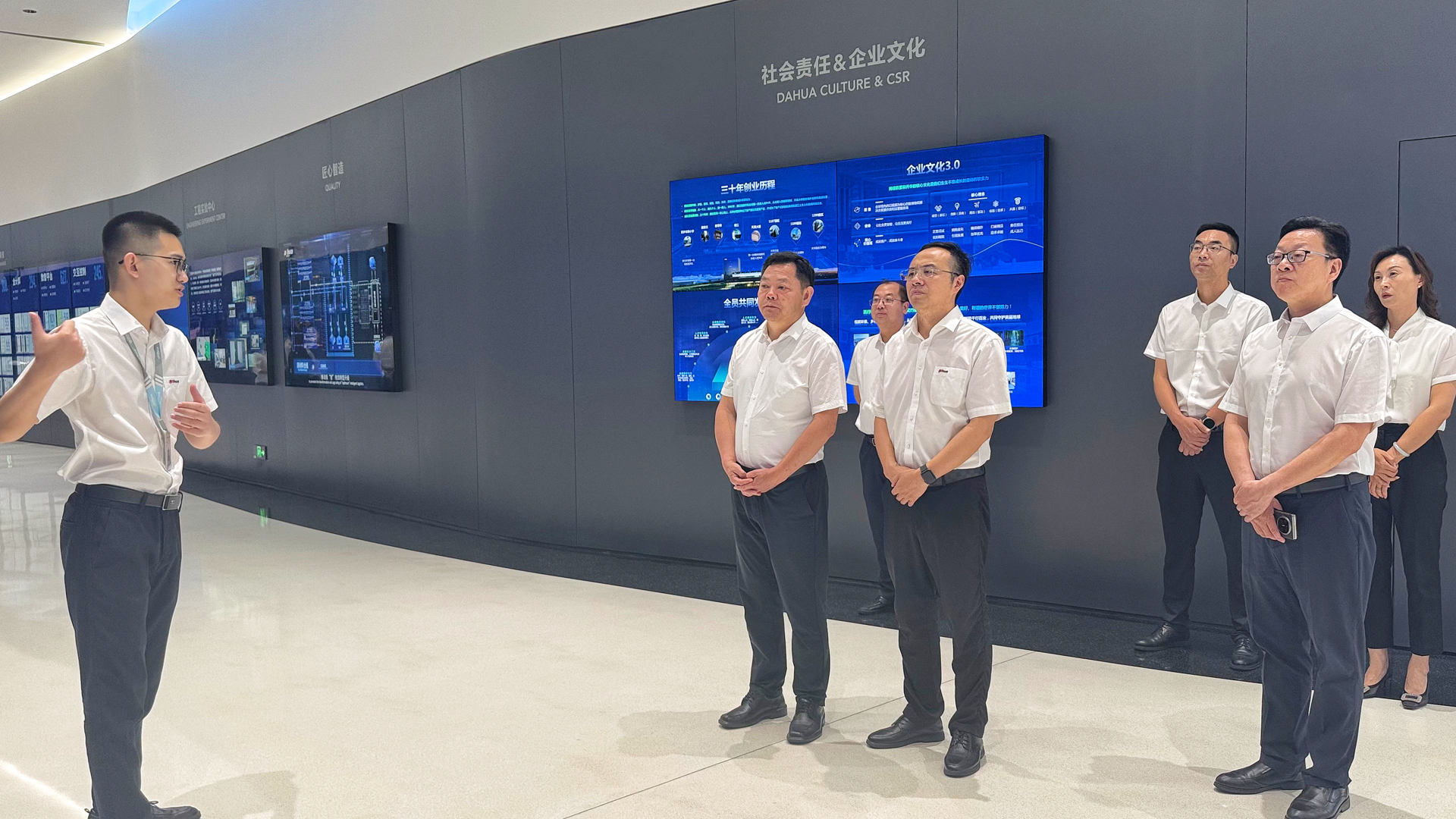 在浙江大华领导全程陪同下,孙永荣一行参观了公司总部的数智展厅和位于杭州富阳的大华智慧物联网产业园,直观感受了浙江大华在视频监控、人工智能等领域的领先技术实力,以及在低空经济、智慧城市、智慧制造、新能源汽车、智慧医疗、智慧教育等领域的创新成果。