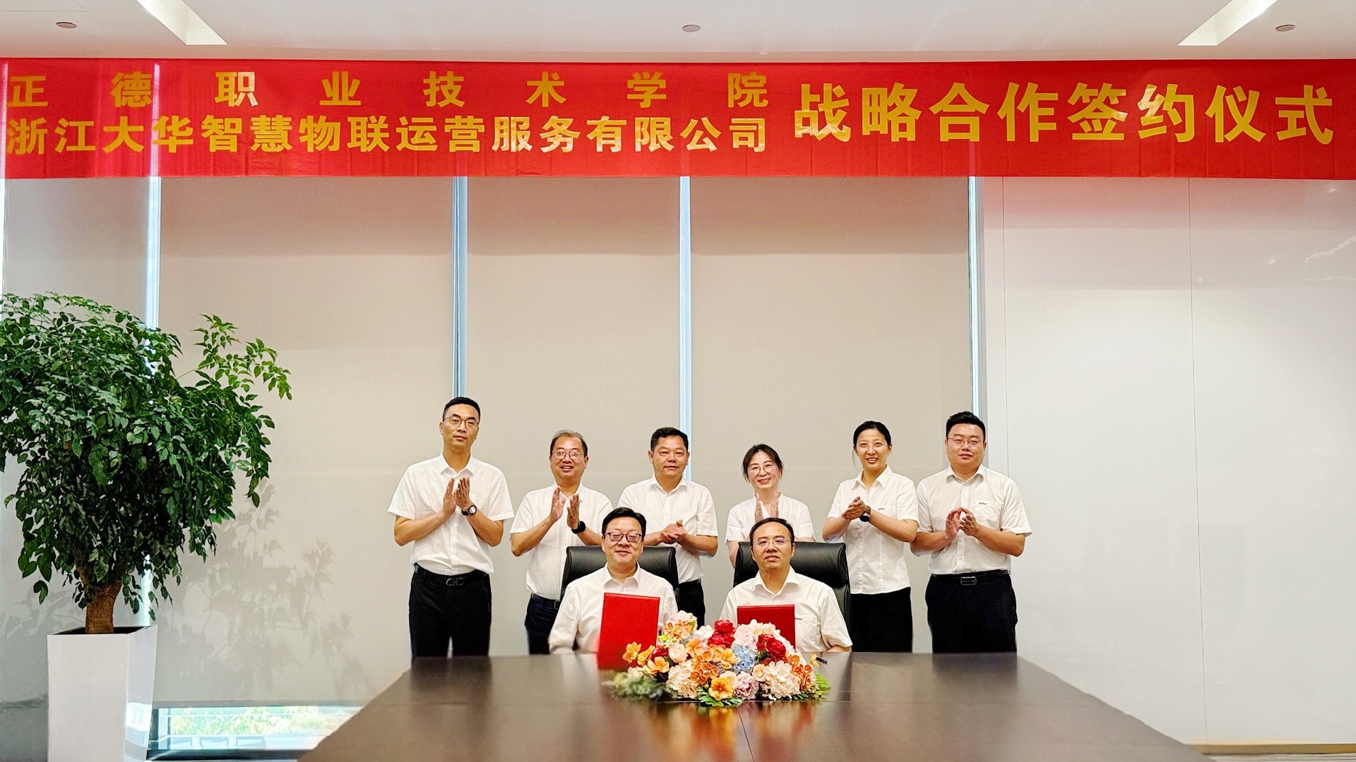 5月20日,av在线 与浙江大华技术股份有限公司(以下简称浙江大华)战略合作签约仪式在浙江大华总部举行。浙江大华运营公司教育服务总经理王益铭、江苏省分公司副总经理方鸣子、运营公司教育服务解决方案总监杨琼瑜、运营公司教育服务华东区总监郭锐,av在线 院长孙永荣、副院长赵凯雷、院长助理、党政办公室主任王伟、院长助理、招生就业处处长王墀以及电子与信息技术系主任刘佳、民用航空系主任吴慧参加签约仪式。