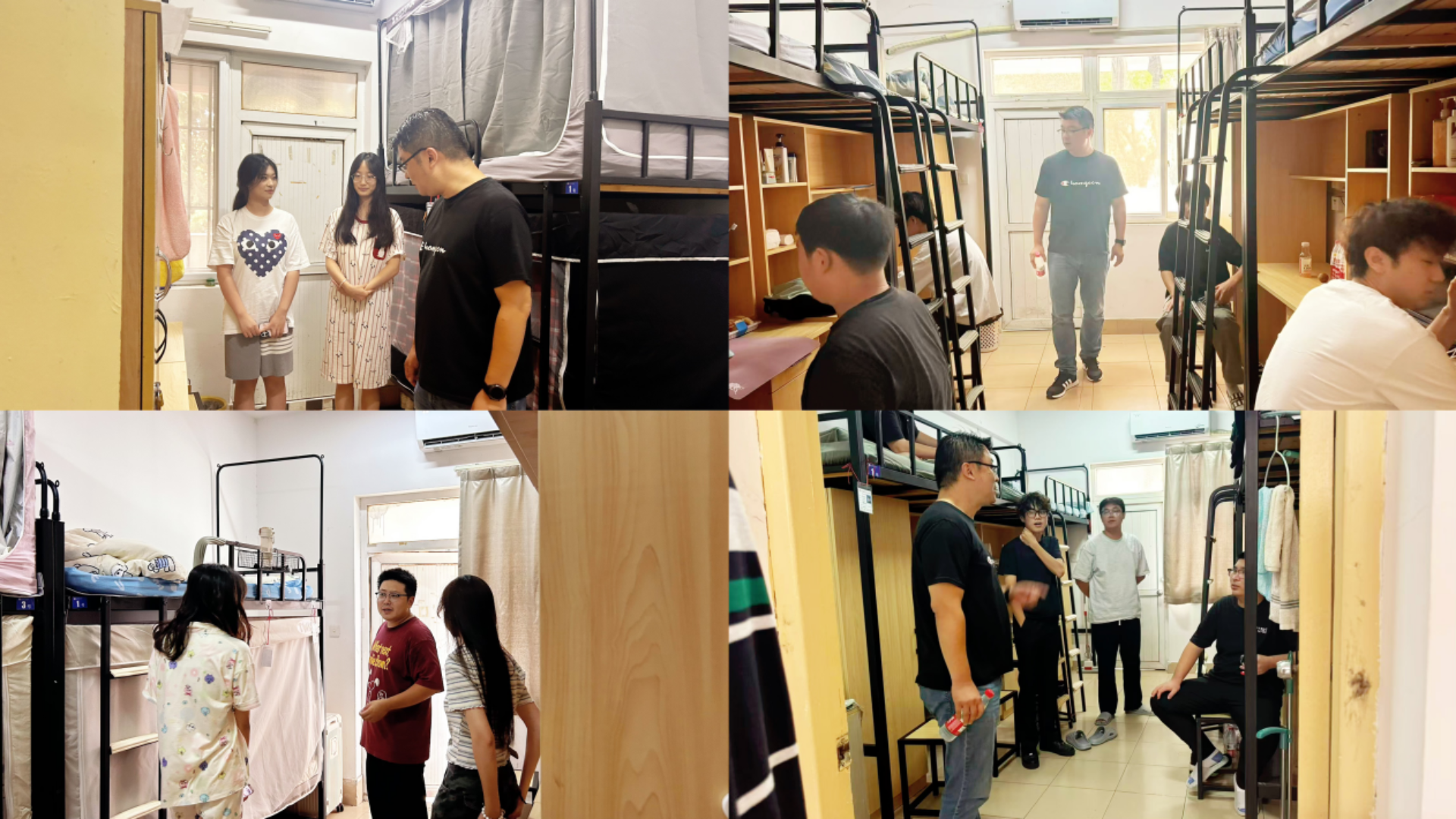 随后,查理与新生辅导员顾轩宇一同走进学生宿舍,结合不同专业特点,与同学们交流未来方向和学习建议。老师们鼓励新生尽快熟悉校园环境,积极融入班集体,建立和谐向上的宿舍氛围,也提醒大家注意安全、互相关心,保持规律作息。