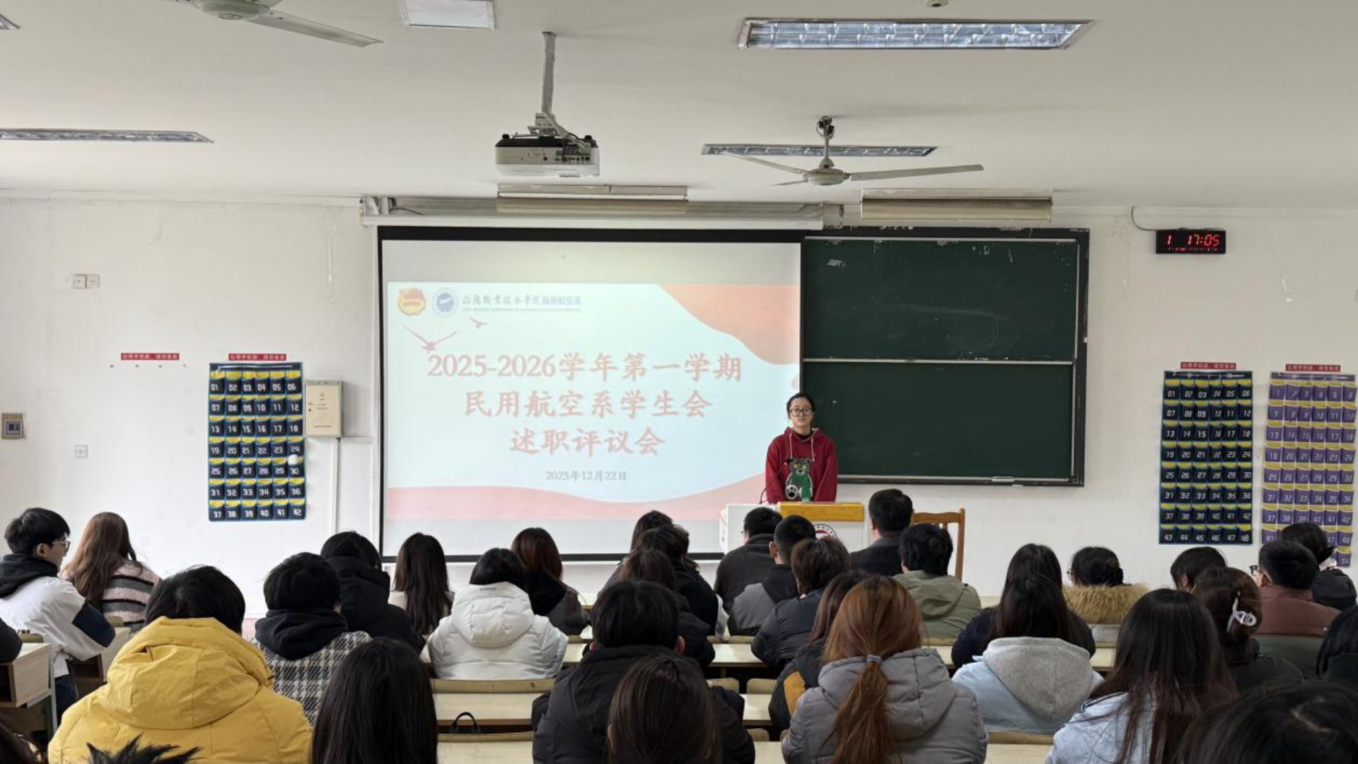 为全面总结本学期学生会工作成效,规范学生组织管理,提升学生干部履职能力,凝聚服务师生、助力系部高质量发展的青春合力,民用航空系学生会于2025年12月22日在1204召开2025-2026年度第一学期学生会述职评议会。系党总支书记查理、系团总支书记陈瑶瑶及学生会全体成员出席本次会议。