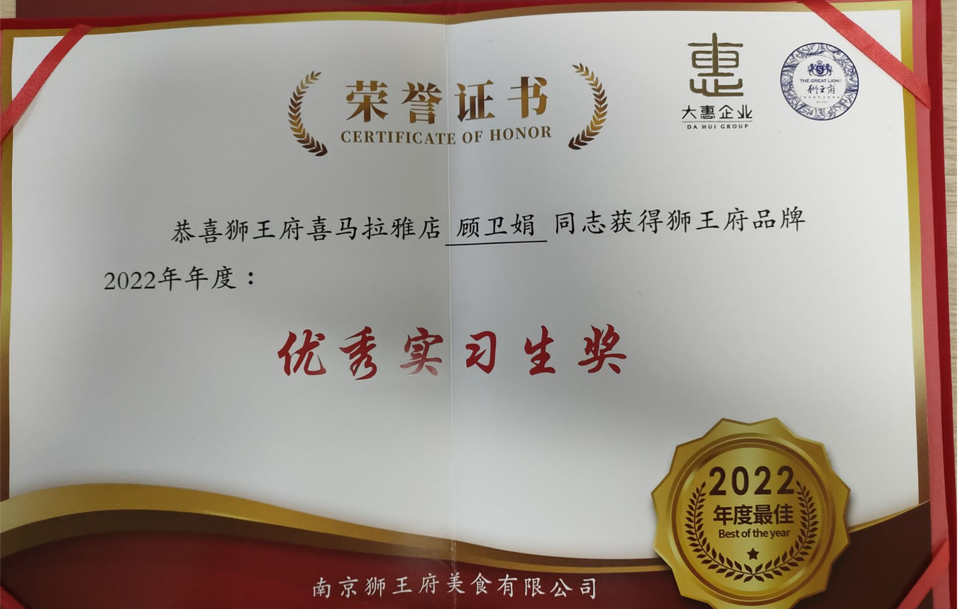 顾卫娟是av在线 民用航空系空中乘务专业2020级同学。在校期间,她认真学习,勇于吃苦。在新员工pk赛当中获得第三名的好成绩,并帮助狮王府喜马拉雅门店获得第一名的好成绩。善于学习-包间服务-外卖-物资盘点-品牌推广和VIP客户会员扩展,各个岗位都表现优异。从一开始的迷茫到品牌认可,工作积极,有了质的飞跃,实习结束将会继续留企工作。现在担任储备主管,下个月晋升主管级别。
