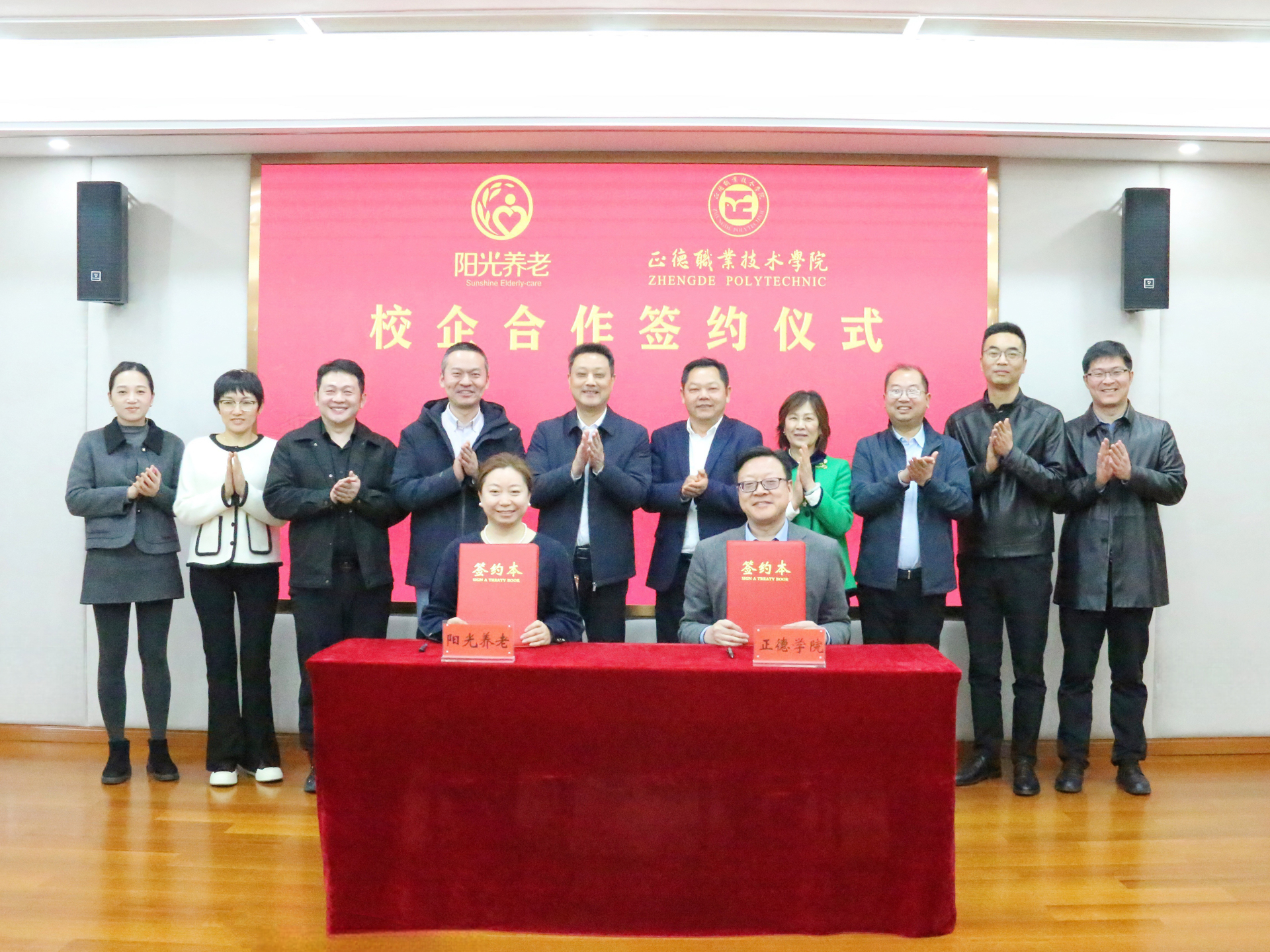 在与会人员的共同见证下,赵凯雷副院长、尹建芳总经理分别代表正德学院、阳光养老签署了校企合作协议。双方将围绕共育“阳光订单班”技能人才、共建养老服务中心、共同开展社会服务等方面,打造产学研教一体化融合发展的新生态,为提升民生福祉做出新的贡献。