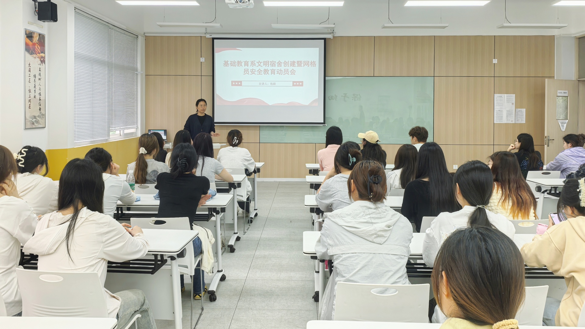 为增强学生安全防范意识,提升文明宿舍创建氛围,营造平安和谐的宿舍环境,基础教育系于2025年5月15日开展文明宿舍创建暨网格员安全教育会。系党支部书记、全体学工人员、在校全体学生干部与宿舍厅室长参加了培训会。