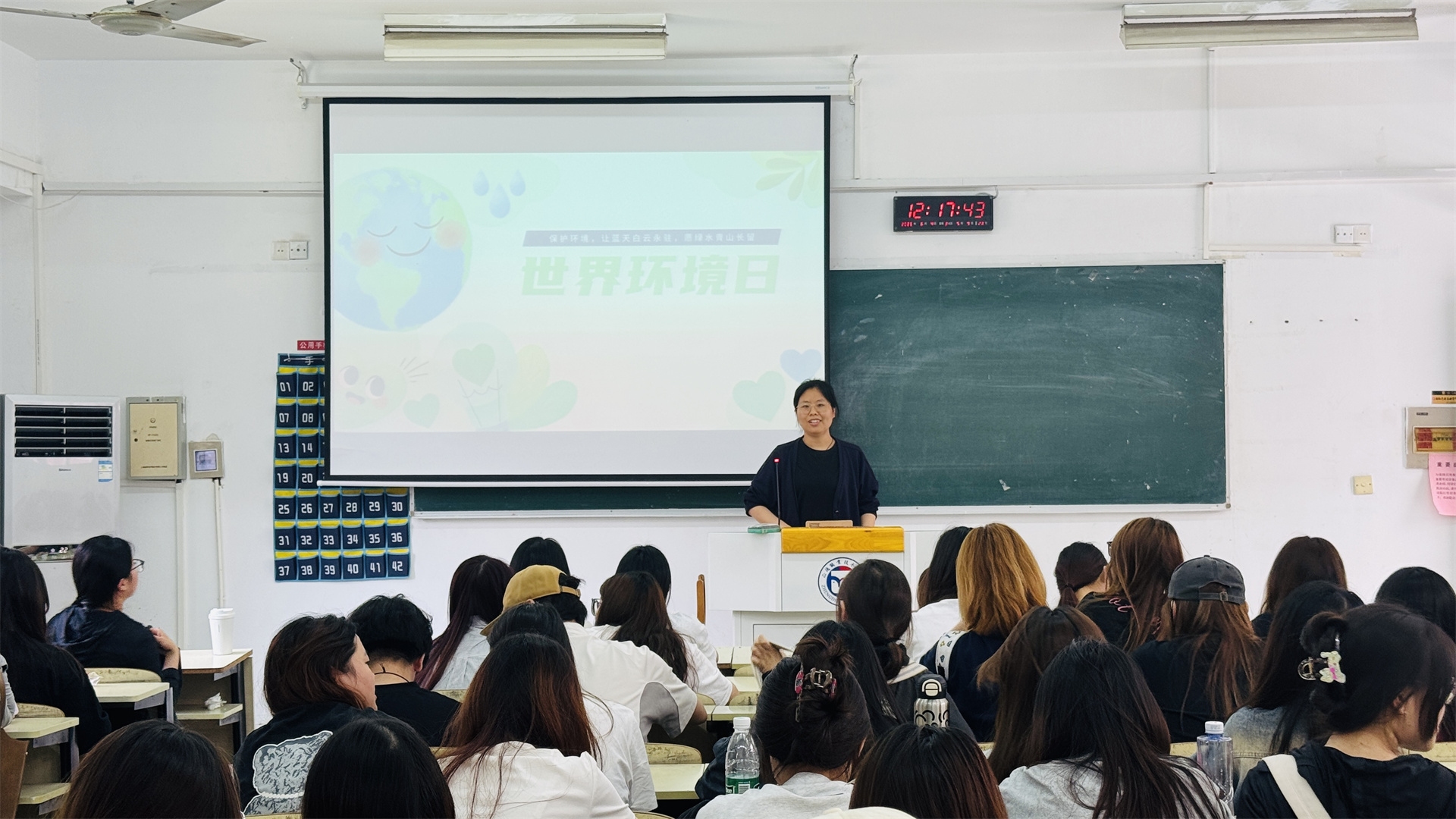 活动伊始,在2204教室,辅导员沈言静老师围绕环境保护的深远意义展开讲解。从生态平衡的维护,到生活垃圾的分类标准,她用通俗易懂的语言深入浅出地解析了可回收物、有害垃圾等类别的划分,并针对同学们日常生活中的常见分类误区进行详细解答。此外,沈老师还分享了诸如“随手关灯”“自带购物袋”等简单易行的环保生活小技巧,鼓励同学们将绿色理念融入日常行为,从点滴做起,守护美丽家园。