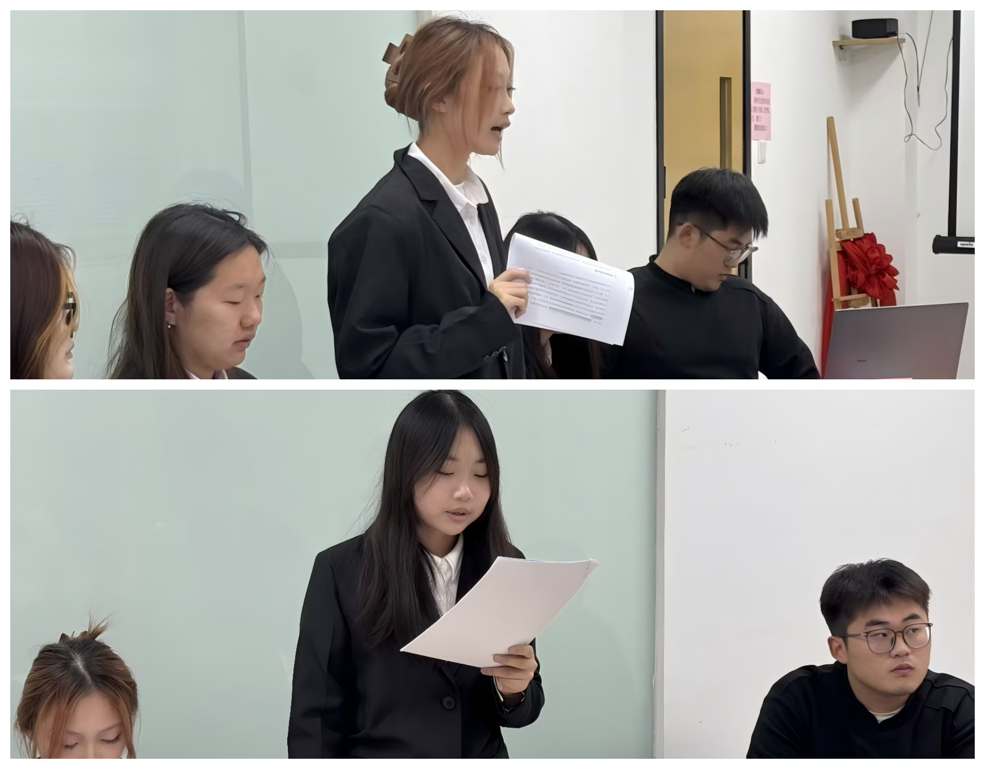 决赛特邀院学生会主席傅媛、艺建系学生会主席洪其、基础教育系学生会主席王宇晴及历届最佳辩手彭梓修担任评委。正反双方围绕“顺境更有利于成长/逆境更有利于成长”这一经典辩题展开巅峰对决。辩手们引经据典、唇枪舌剑,立论清晰有力,自由辩论机锋频出,总结陈词情理兼备,充分展现了扎实的辩论功底与敏捷的思维反应。