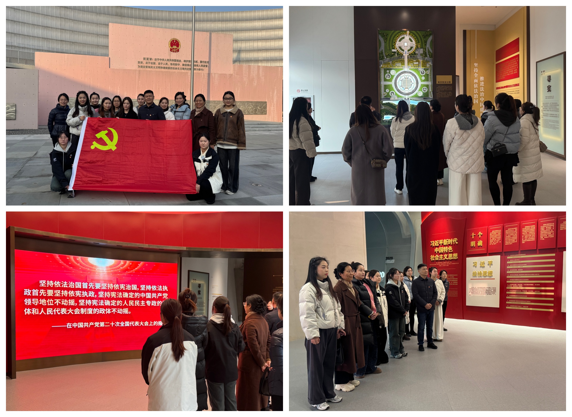 随后,全体党员转赴南京宪法主题公园开展宪法学习实践。通过参观“寻宪、制宪、修宪、奉宪”等主题教育展区,全体党员系统回顾了中国共产党领导人民探索、确立和发展宪法制度的伟大历程,深刻认识到中国特色社会主义法治道路的必然性与优越性。一幅幅历史图片、一件件文献实物,生动诠释了宪法在国家治理和社会生活中根本性、全局性的地位。