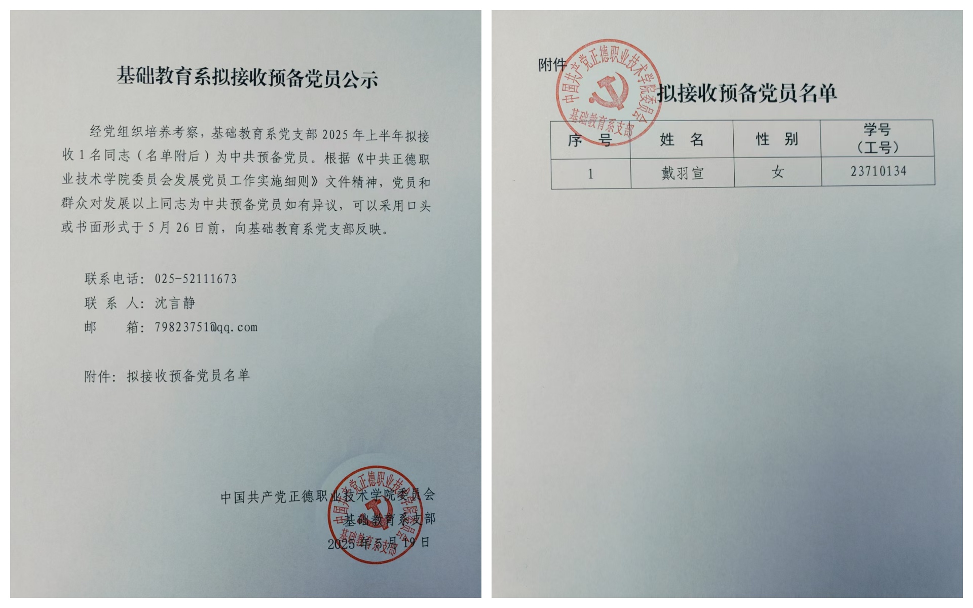 经党组织培养考察,基础教育系党支部2025年上半年拟接收1名同志(名单附后)为中共预备党员。根据《中共av在线 委员会发展党员工作实施细则》文件精神,党员和群众对发展以上同志为中共预备党员如有异议,可以采用口头或书面形式于5月26日前,向基础教育系党支部反映。