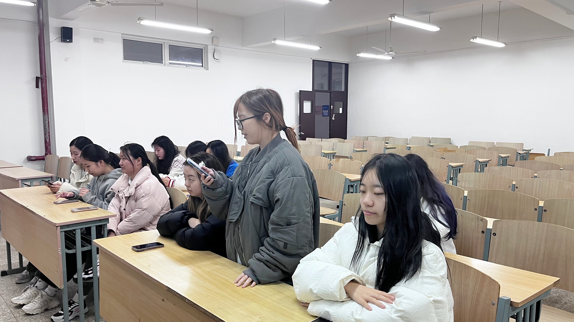宣讲结束后谢楚老师请对播音主持专业感兴趣的同学留下并进行订单班选拔。同学们踊跃报名,最终选取魏雨菲等5名同学为主持人班学员。