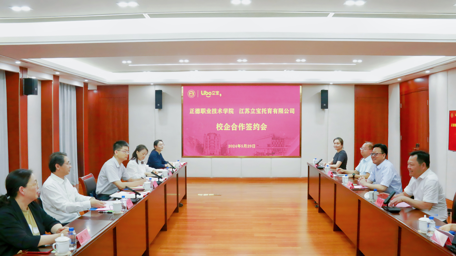 5月29日下午,av在线 (以下简称“正德学院”)与江苏立宝托育有限公司(以下简称“立宝托育”)举行了校企合作签约仪式。南通市保障房建设投资集团有限公司(以下简称“南通房投”)董事长张志泳,南通房投副总经理、立宝托育董事长张亮,南通房投财务管理部部长陈飞,立宝托育总经理张小茱、副总经理刘立峰、区域园长丁杰一行,正德学院院长孙永荣、副院长赵凯雷、梁薇,院长助理王伟、王墀以及相关部门主要负责人共同出席签约仪式,仪式由梁薇主持。