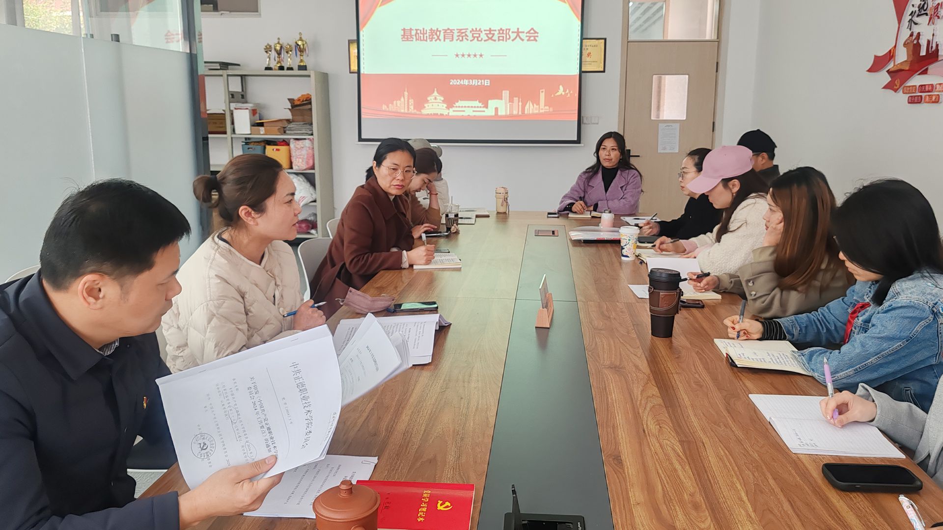 为进一步落实院长工作报告要求,深刻理解学院办学形势与要求,精准把握学院重点工作要求;巩固拓展习近平新时代中国特色社会主义思想主题教育成果,深入学习贯彻学院2024年全面从严治党会议精神,基础教育系以开展学习院长报告、全面从严治党工作报告为契机,以立德树人为根本目标,围绕“必由路”、“创新路”、“特色路”的总体要求,以及党委2024年工作要点,围绕结合党支部理论学习清单及支部书记培训会精神为内容,统一思想、梳理工作重点、狠抓工作落实,助力学院高质量可持续发展。