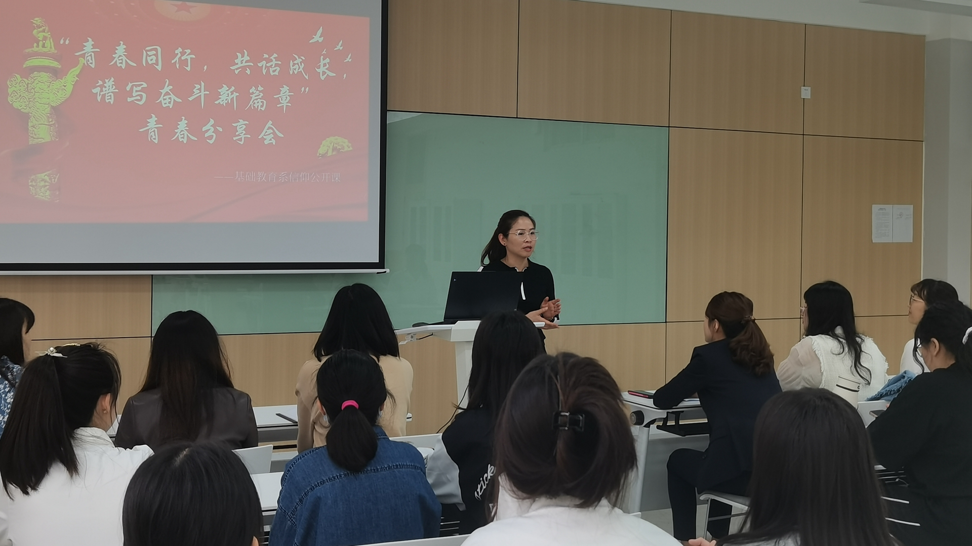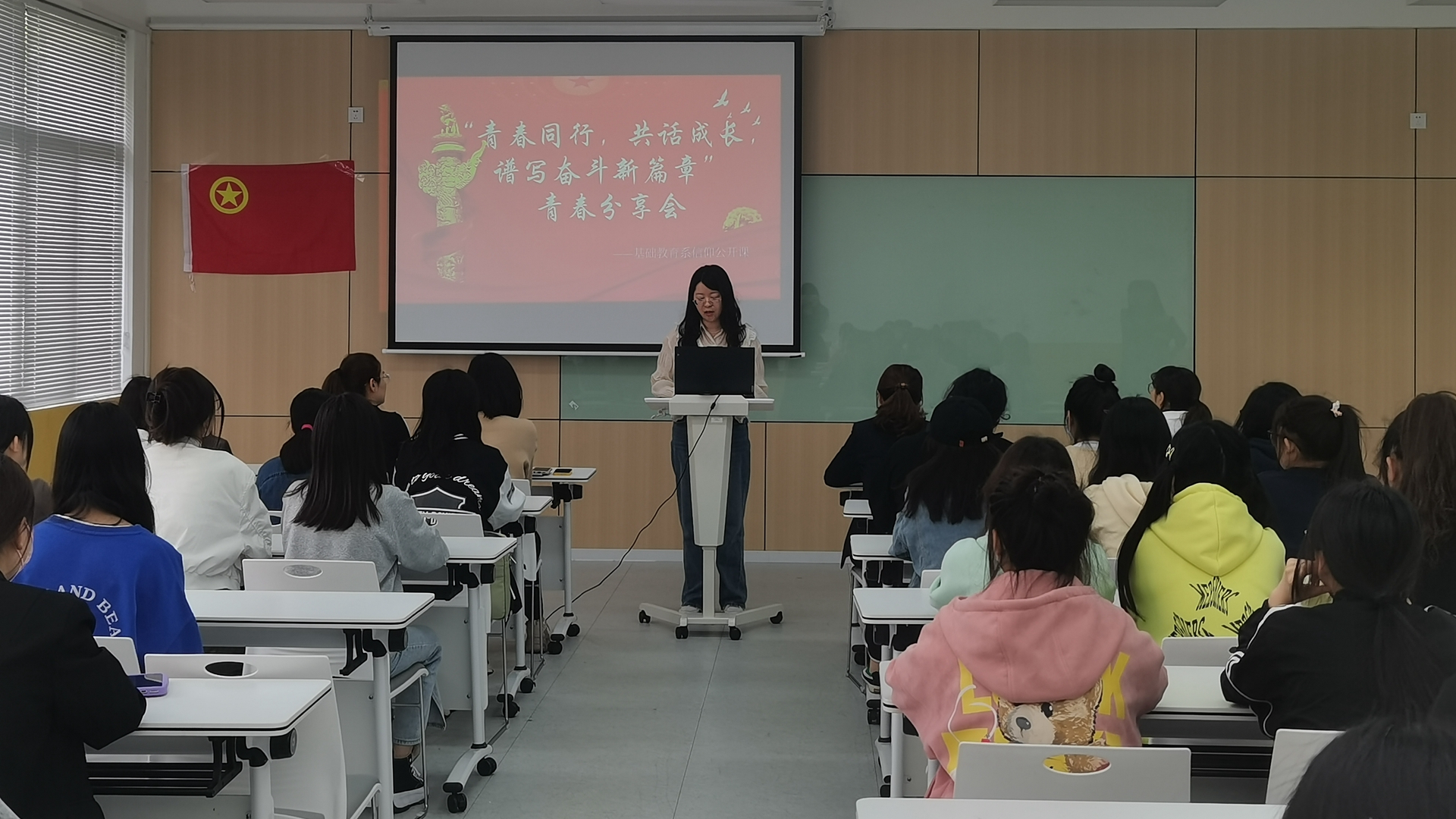 为进一步组织引导广大青年学生深入学习宣传贯彻习近平新时代中国特色社会主义思想和团十八大会议精神,加强共青团思想政治引领工作,根据《关于实施高校共青团“信仰公开课”计划的通知》文件精神和院团委工作安排,基础教育系团总支于4月27日下午在9205教室开展了一场别开生面的信仰公开课。基础教育系党支部书记杨春娟、辅导员朱雯和我系优秀青年学子参加。团总支书记魏玮主持本场信仰公开课。