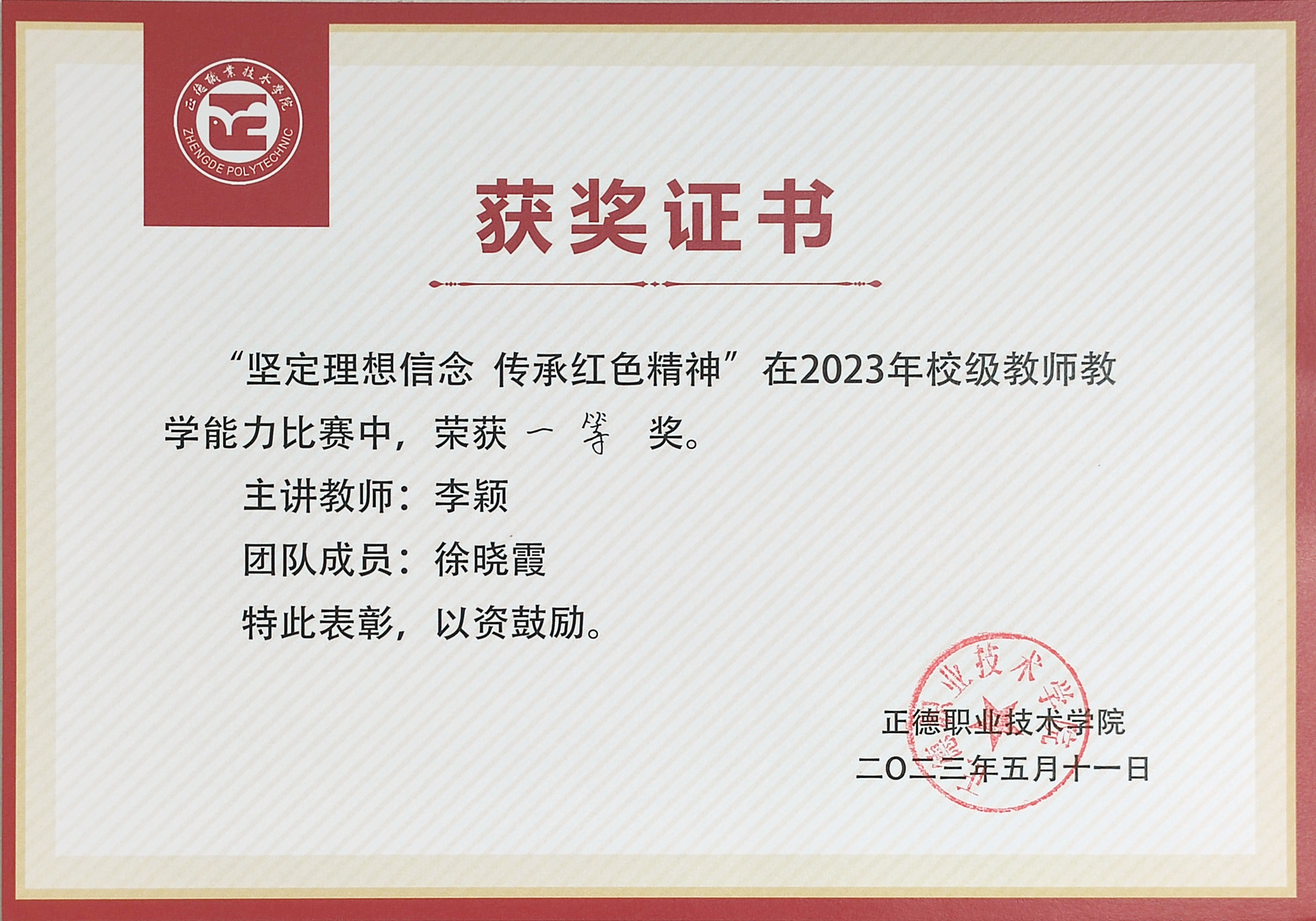 5月11日下午,我校教师教学能力比赛在5201会议室举行,思政教研部李颖、徐晓霞老师在比赛中表现出色,荣获一等奖。