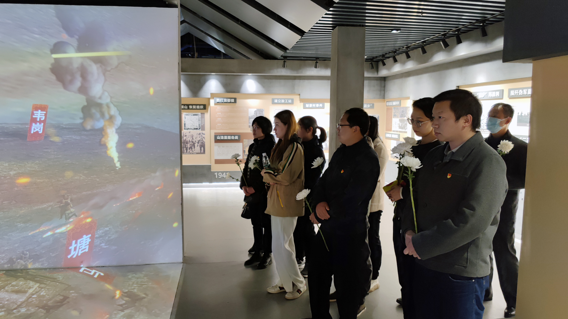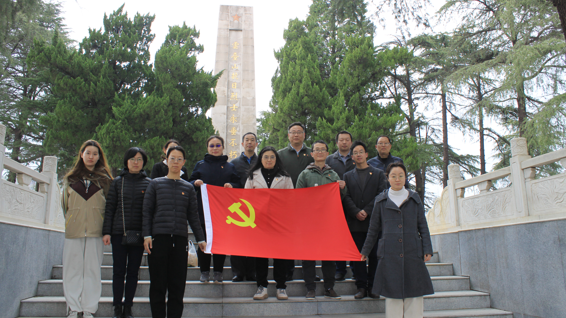为深入学习贯彻落实党的二十大精神,进一步激发党员教师牢记使命,敢于斗争,立足岗位建功立业的积极性、主动性和创造性,以昂扬的姿态贯彻好学院思想政治工作会议精神,3月30日下午,清明节前夕,思政教研与公共教学党支部党员教师、非党员课程负责人一行,来到云台山抗日烈士陵园开展主题党日活动。