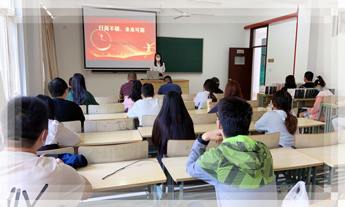学生代表张玉潇做了《行而不辍,未来可期》主题发言,勉励同学我们在升本冲刺的关键阶段,以咬定青山不放松和钉钉子的精神安心备考并感谢学院对毕业生的关心和关怀。
