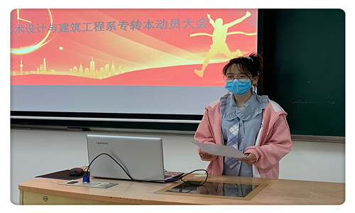 2022年5月17日,正德学院艺建系2022届毕业生专转本冲刺动员大会在8303教室召开。艺建系主任谢岚、艺建系党支部书记陈宏波、辅导员老师以及24名在校即将参加专转本考试的学生代表参加会议,会议由廖晶晶老师主持。