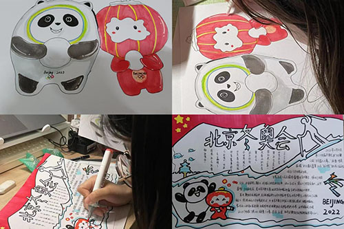 本次活动首先组织学生认真学习总书记给冰雪健儿的回信,通过视频、图片等方回顾北京冬奥会我国奥运健儿比赛夺冠的精彩瞬间,展示冬奥赛场上我国冰雪健儿不畏强敌、奋勇拼搏的风采。其次,各班团员分组畅谈,在学习工作中将“胸怀大局 自信开放 迎难而上 追求卓越 共创未来”的北京冬奥精神落到实处,认真学习,踏实做事,从青年时代立志“尽最大努力为国争光。最后,同学们踊跃参与“我心中的冬奥”绘画创作,将拼搏、团结、为国争光淋漓尽致地展示在自己的绘画作品中。