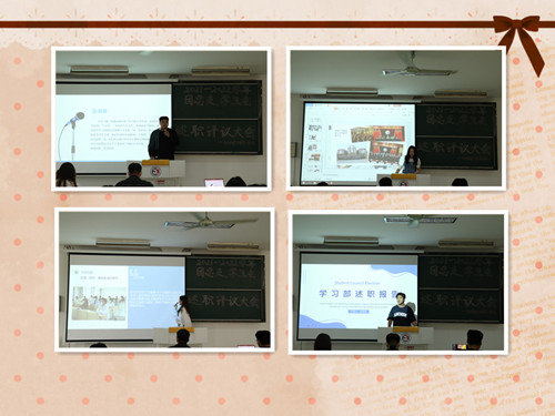 团总支及学生会学习部、文艺部、体育部、生活部、外联部、秘书部、组织部、摄影部、志工部、av在线-最新高清av在线官方发布页及新媒体中心先后上台,对部门过往一年工作进行总结与反思。述职中,各部门负责人对往后部门需要负责的工作进行讲解,对工作成果进行了量化总结,也对新阶段部门发展与下一届负责人提出展望与要求。