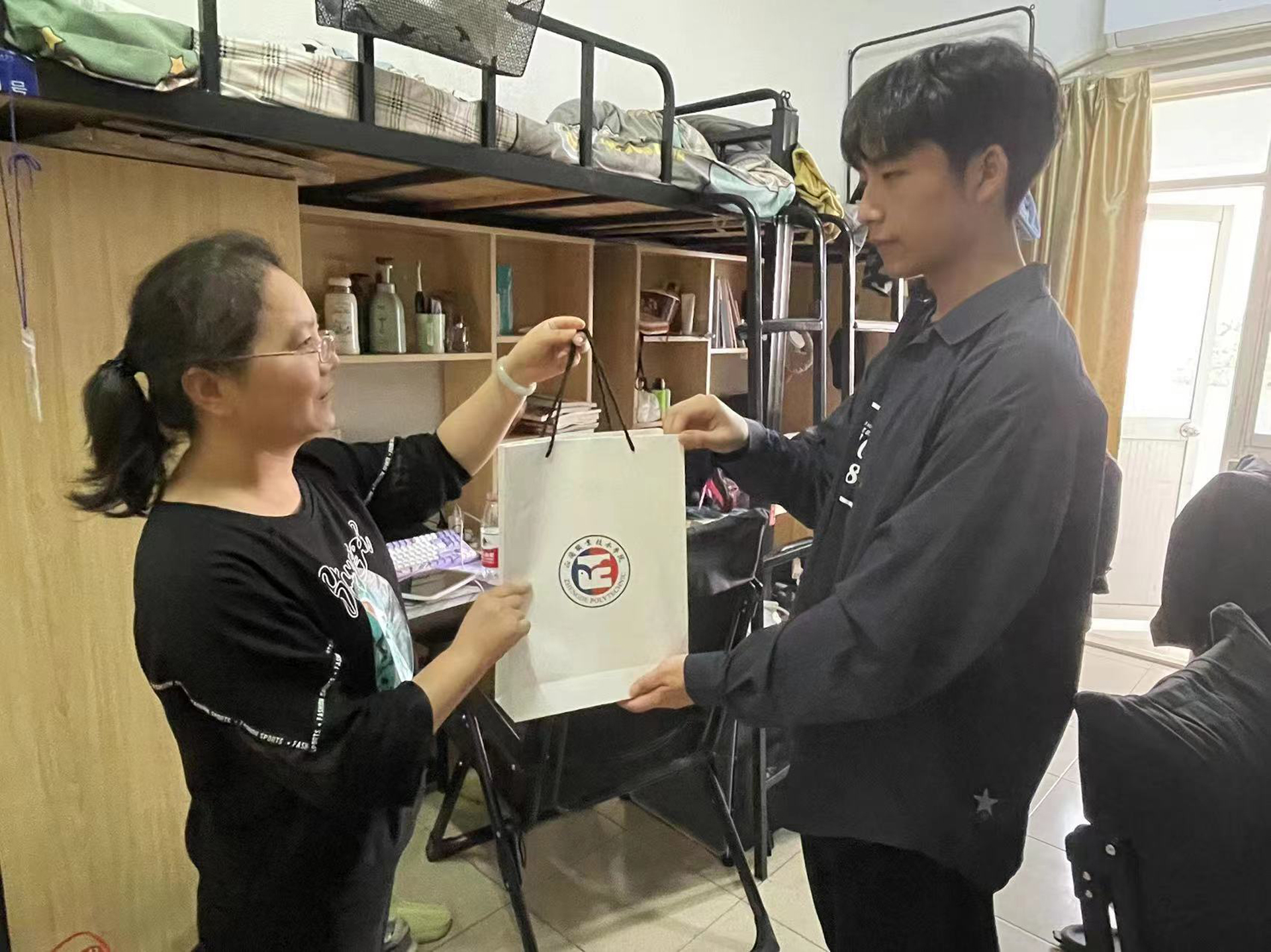 10月19日周四下午,建筑室内设计专业224805-06班的班主任时永玲、李卉老师进入学生宿舍深入了解学生学习和生活情况。此段时间,很多同学也在积极准备“专转本”考试,为激励考生以更积极、更饱满的精神状态参加考试,两位班主任老师到宿舍亲切慰问正在备考的学生,对同学们积极向上的备考状态表示肯定,同时就学习、生活等方面进行了细致地交流,希望同学们调整好时间,合理规划每一天,以最佳状态备考,并给学生准备了学习用品以资鼓励。
