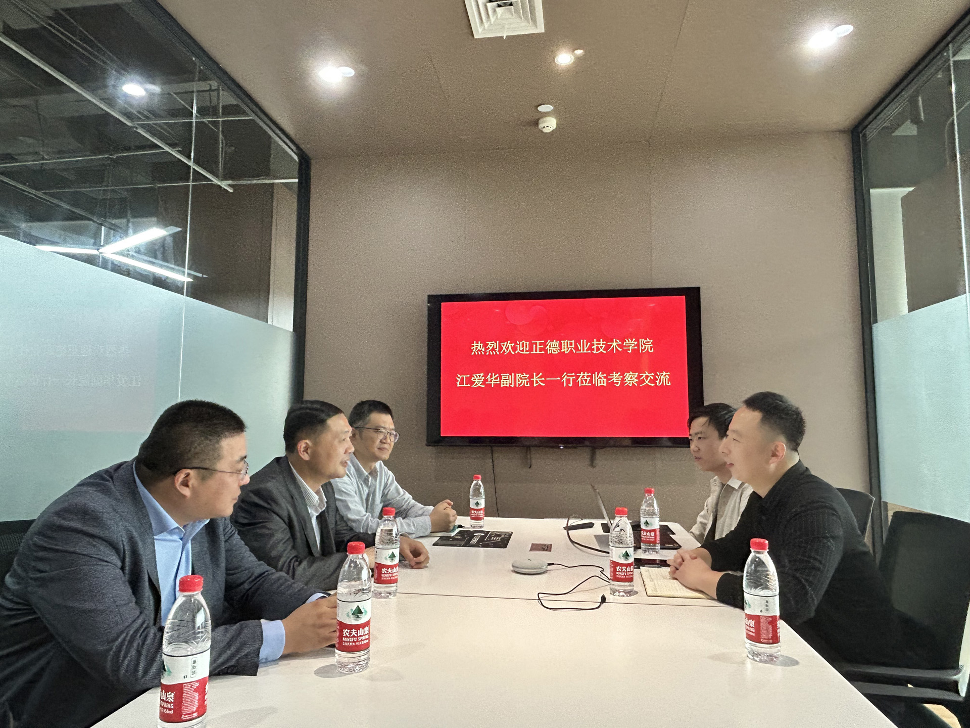 参观后,维伍科技两位总监与av在线 一行进行了热情深入的座谈交流。维伍科技公司张学栋总监首先介绍了企业发展情况、校企合作现状、产教研一体化融合构建模式等内容。随后赵明军总监针对相关内容作了补充并表达了希望与我校积极开展产教研融合一体化、科技赋能教学、共建合作互赢新局面的愿景。江爱华副院长从学校办学背景、办学成果等方面介绍了我校基本情况,并指出党的二十大提出职业教育的职普融通、产教融合、科教融汇三大“融合”是目前我校重点关注方向。同时建议维伍科技开展进校园讲座活动、共建职业培训课程与数字教材、共建教科研项目、落实产教融合共同体以及区域联合体等内容。并通过反馈为其他合作单位遴选优秀人才,真正实现企业与学校相互赋能,达成多方位共赢局面。