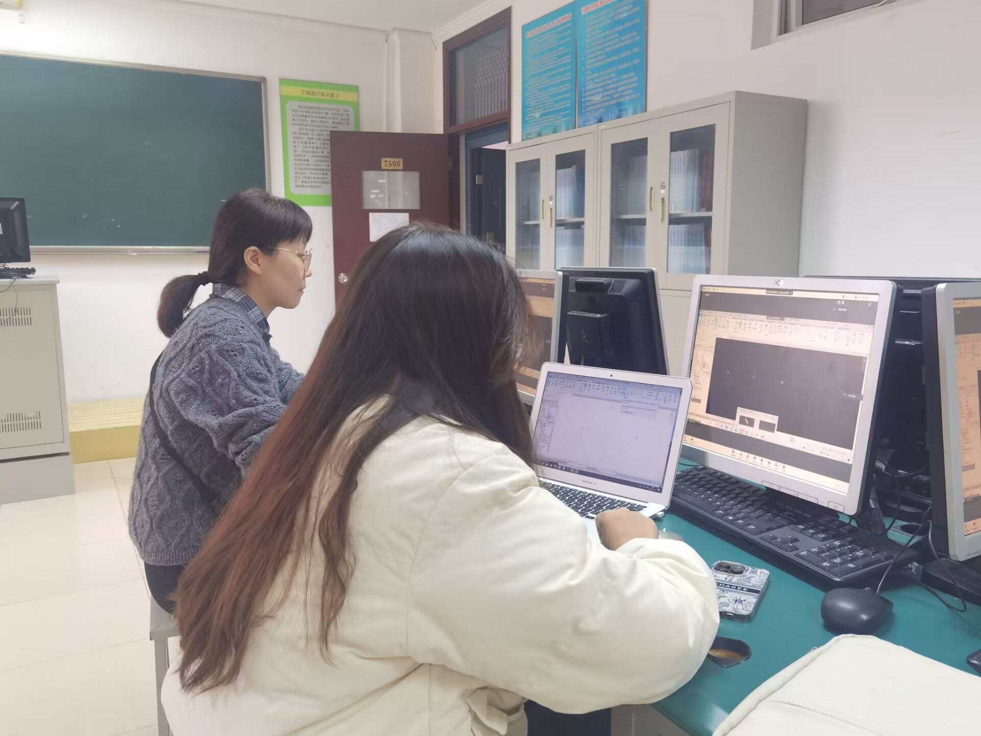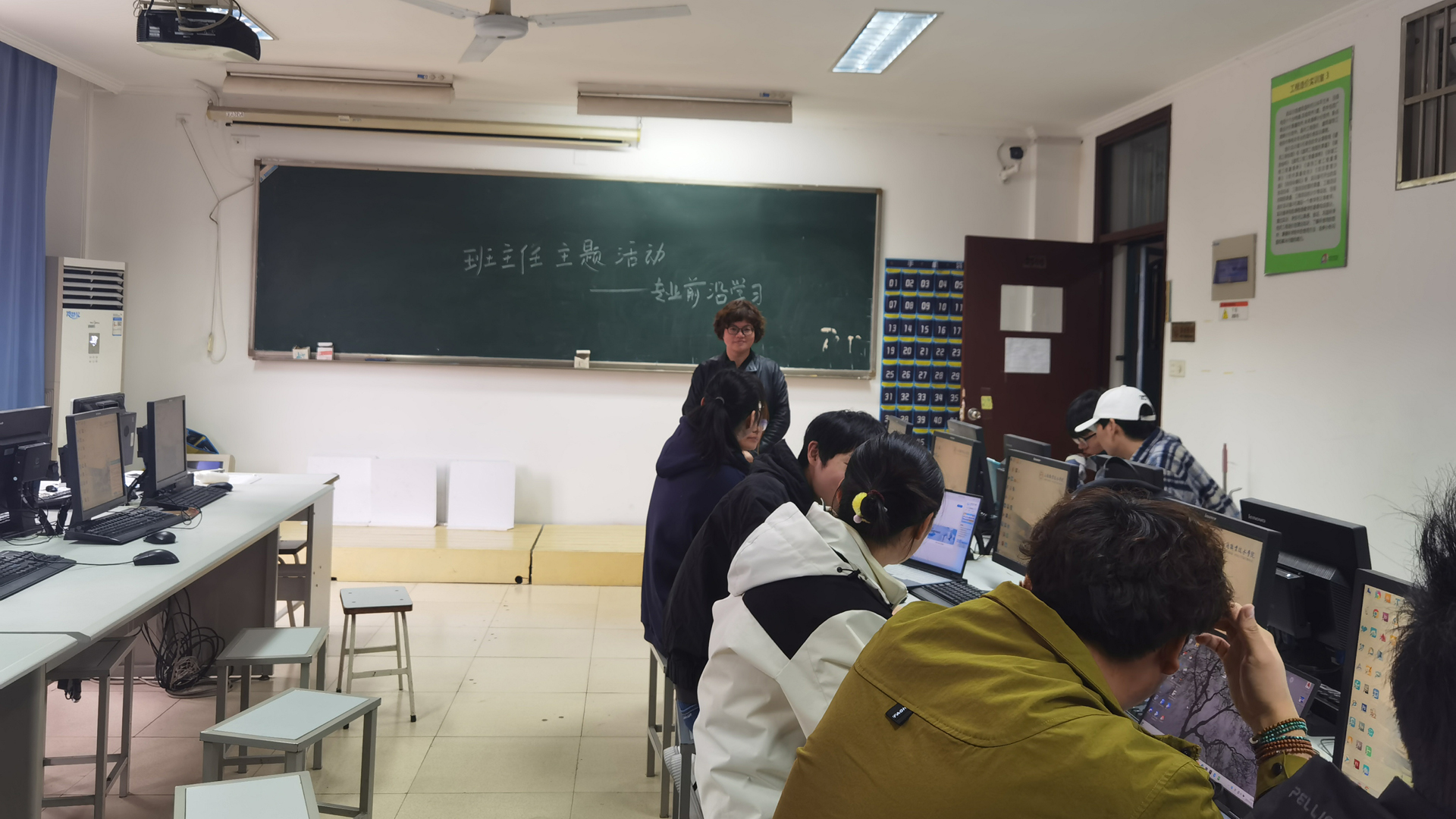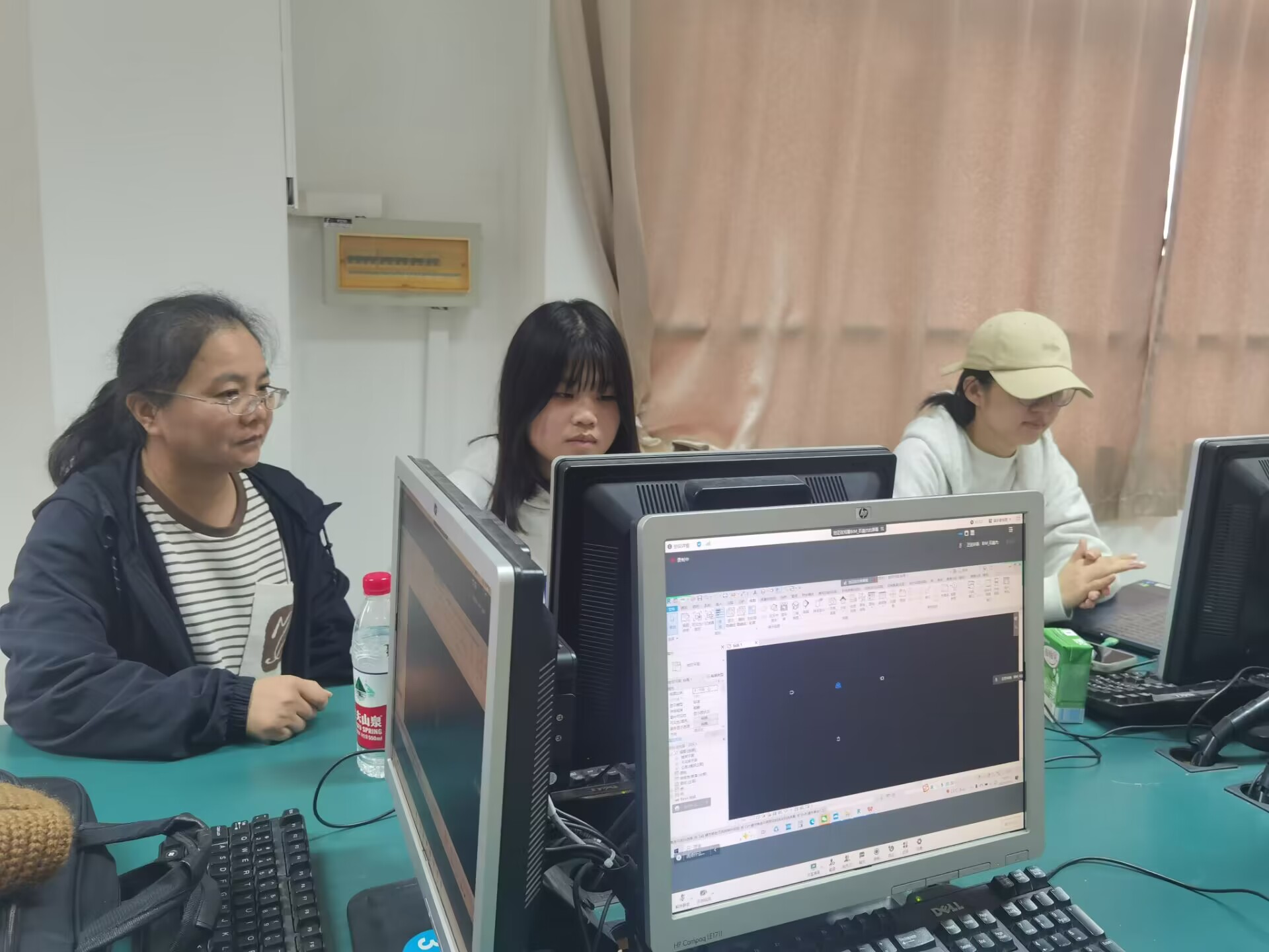 在互动交流环节,同学们踊跃提问,三位班主任老师就同学们提出的“在校期间要有哪些软件工具或者哪些知识方面的准备”等问题进行了互动交流。三位老师也利用机房现有设备,带着同学们进行现场演练操作相应软件。最后三位老师鼓励同学们在课程学习之外,应打开思维,与行业内设计单位、工程咨询等单位进行学习交流,以便找准未来职业发展定位。
