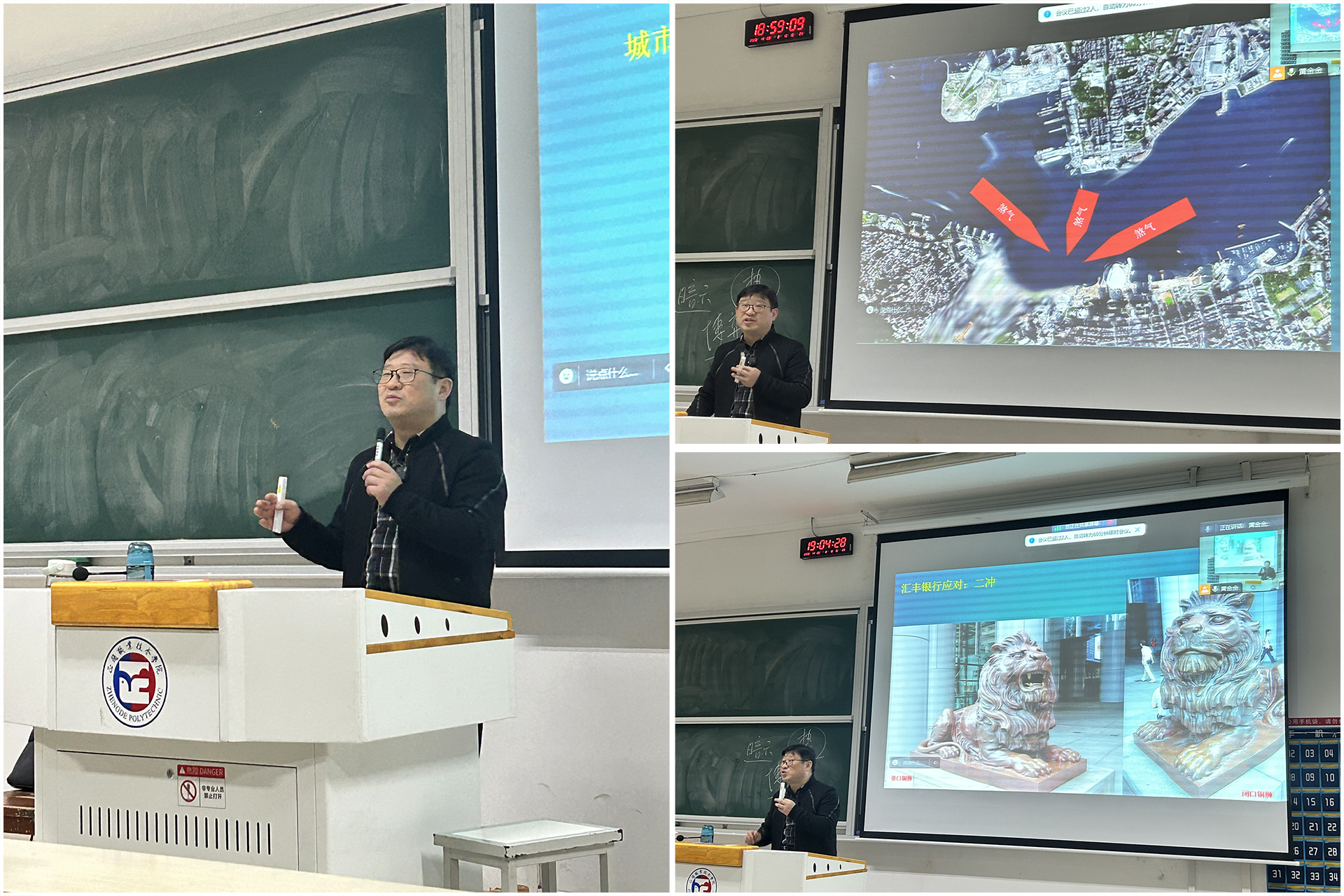 成乔明老师以《建筑设计中风水运用的实证分析》作为讲座主题,将中国传统文化风水学在建筑规划和建筑设计重点应用进行了一场精彩的分享。讲座中对风水学与人的心理、行为、健康关联的因素进行了剖析,阐述了风水学文化与城市建筑设计中与地理地貌、水文水势、心理暗示、周边建筑之间的关系。讲座中选取 “香港国际金融中心”和“上海陆家嘴国际金融商圈”二个案例采用实证分析法,以图文并茂、生动风趣的语言形式解析了风水学在建筑设计及城市规划中的具体运用过程及方法,让在场师生得到了很大的知识提升,收获满满。