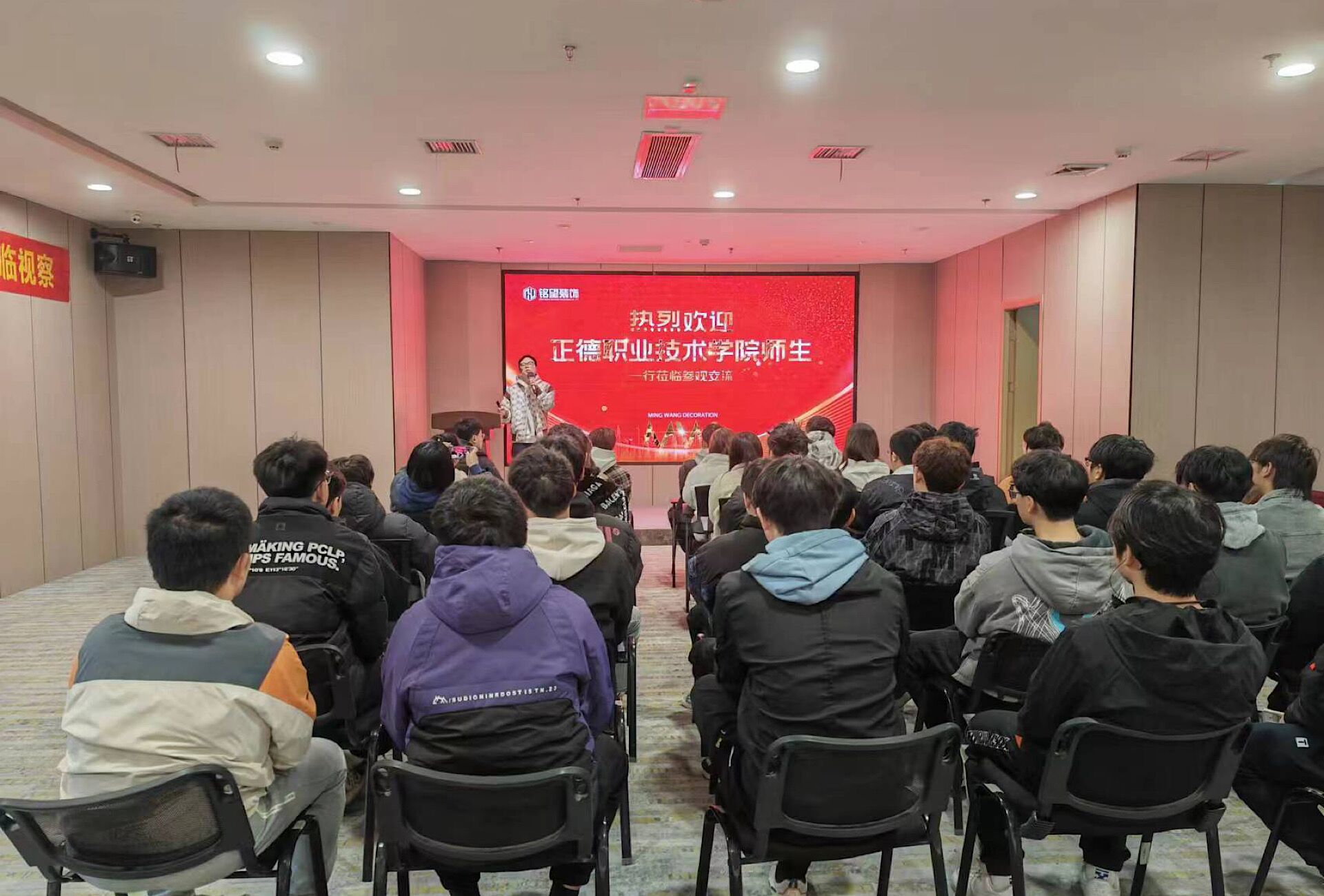 2023年12月4日上午,艺术设计与建筑工程系环境设计专业224301班的同学在班主任钱抒老师的带领下赴南京铭望装饰设计有限公司开展实践教学调研,帮助学生了解专业的企业运作模式及先进的实操技术,了解室内设计相关的装饰材料及施工工艺过程,未来的发展趋势。