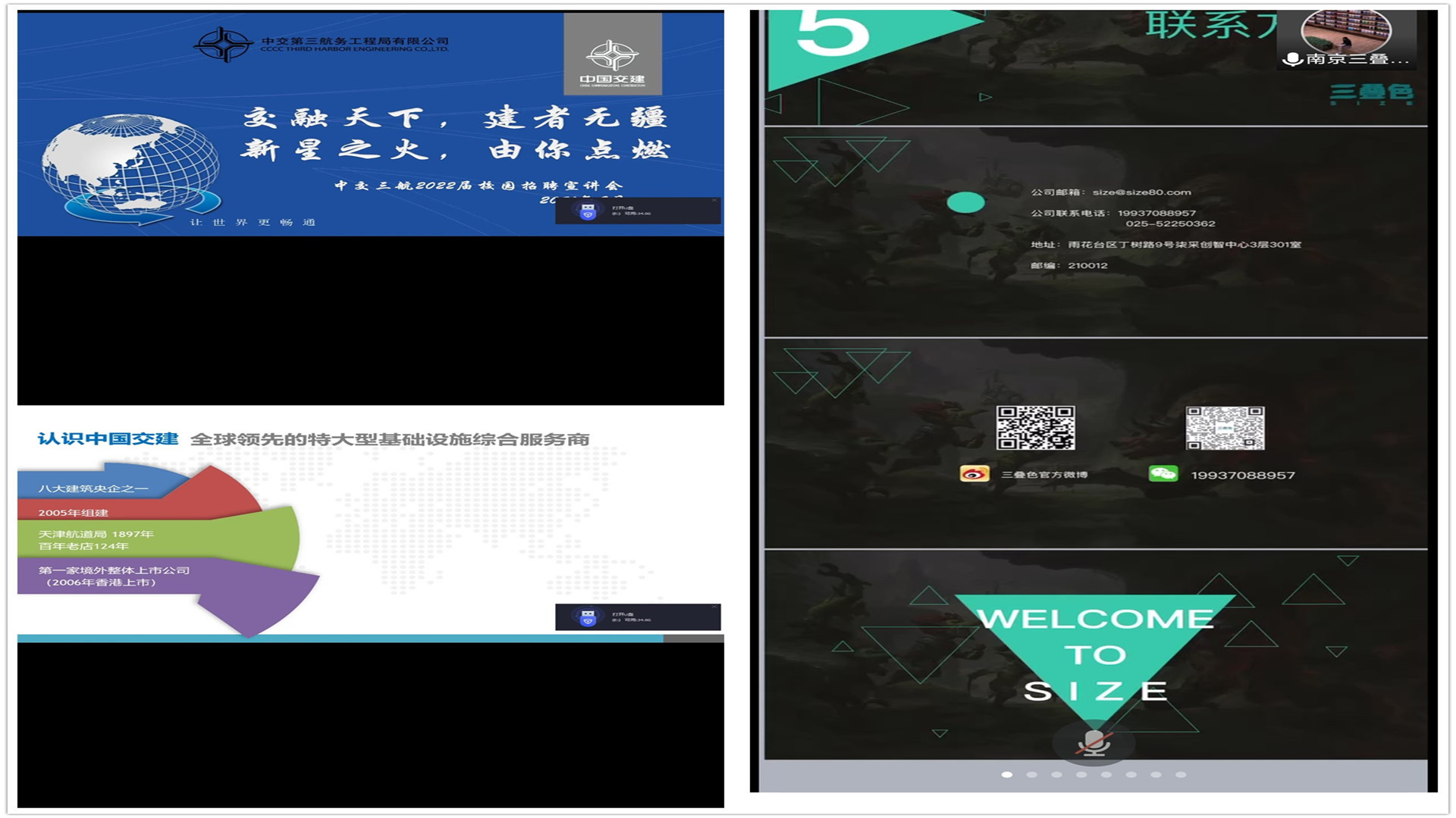 为全面落实学院关于做好就业创业工作的部署要求,做好2024届学生就业工作,把就业工作再抓细、再抓实,广泛动员各方资源,搭建供需服务平台,努力拓展实习渠道,促进2024届及2023届未就业学生更高质量就业。11月23日下午,艺术设计与建筑工程系邀请中交三航局第三工程有限公司、苏世建设管理集团有限公司、江苏锦华建筑装饰设计工程股份有限公司、南京三叠色信息科技有限公司4家企业举办线上2024届首场招聘会。