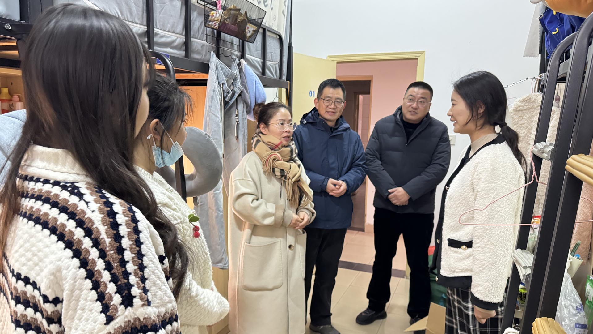 新学期伊始,为了深入了解学生返校后的状态,激励他们以饱满的热情和精神风貌投入新学期的学习与生活,艺术设计与建筑工程系主任周卫、副主任陆松和党支部书记杨春娟,携手辅导员老师们,于开学首日深入学生宿舍进行走访。