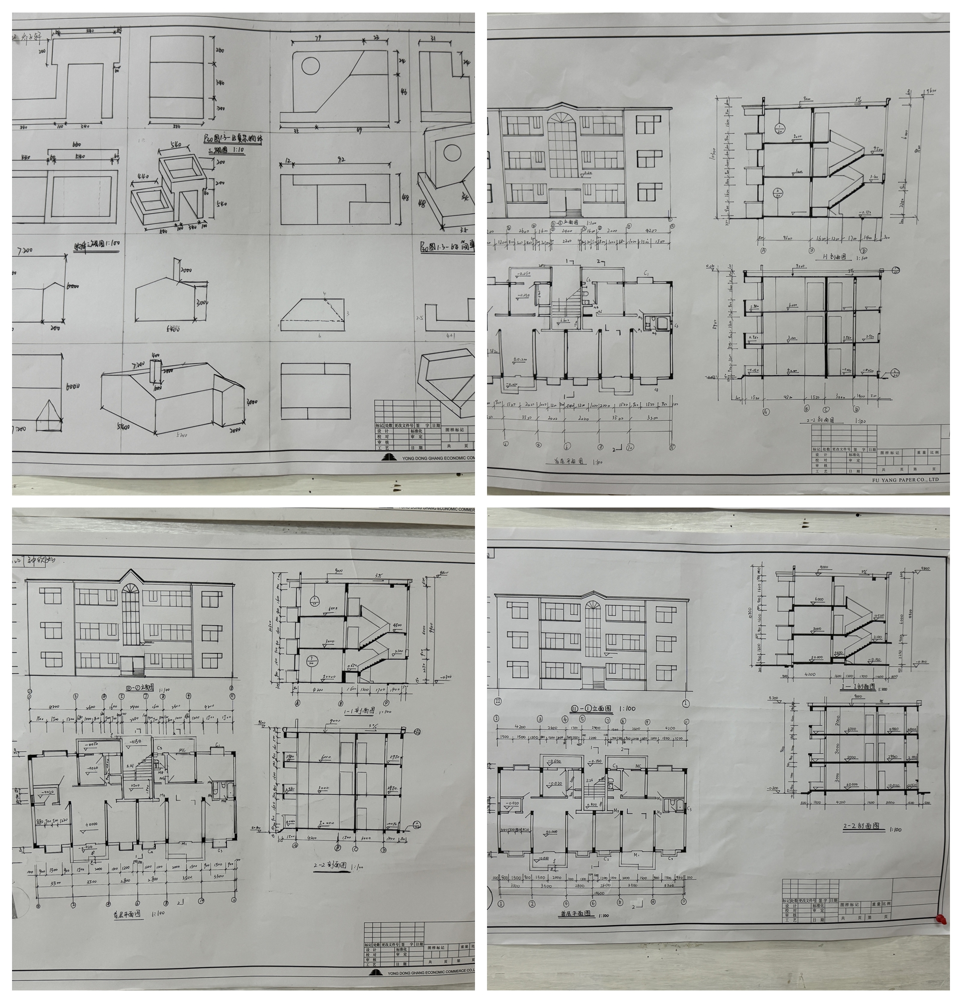本次作业展示中建筑工程识图部分,以实际工程图为载体,注重考核学生精准识读建筑工程图纸能力;制图部分,根据制图标准规范,考核学生建筑工程图的手工绘制能力。经过辅导员魏玮老师的组织和专业课钱抒老师的精心指导,共选出16幅优秀作业作品在8号楼走廊展出。
