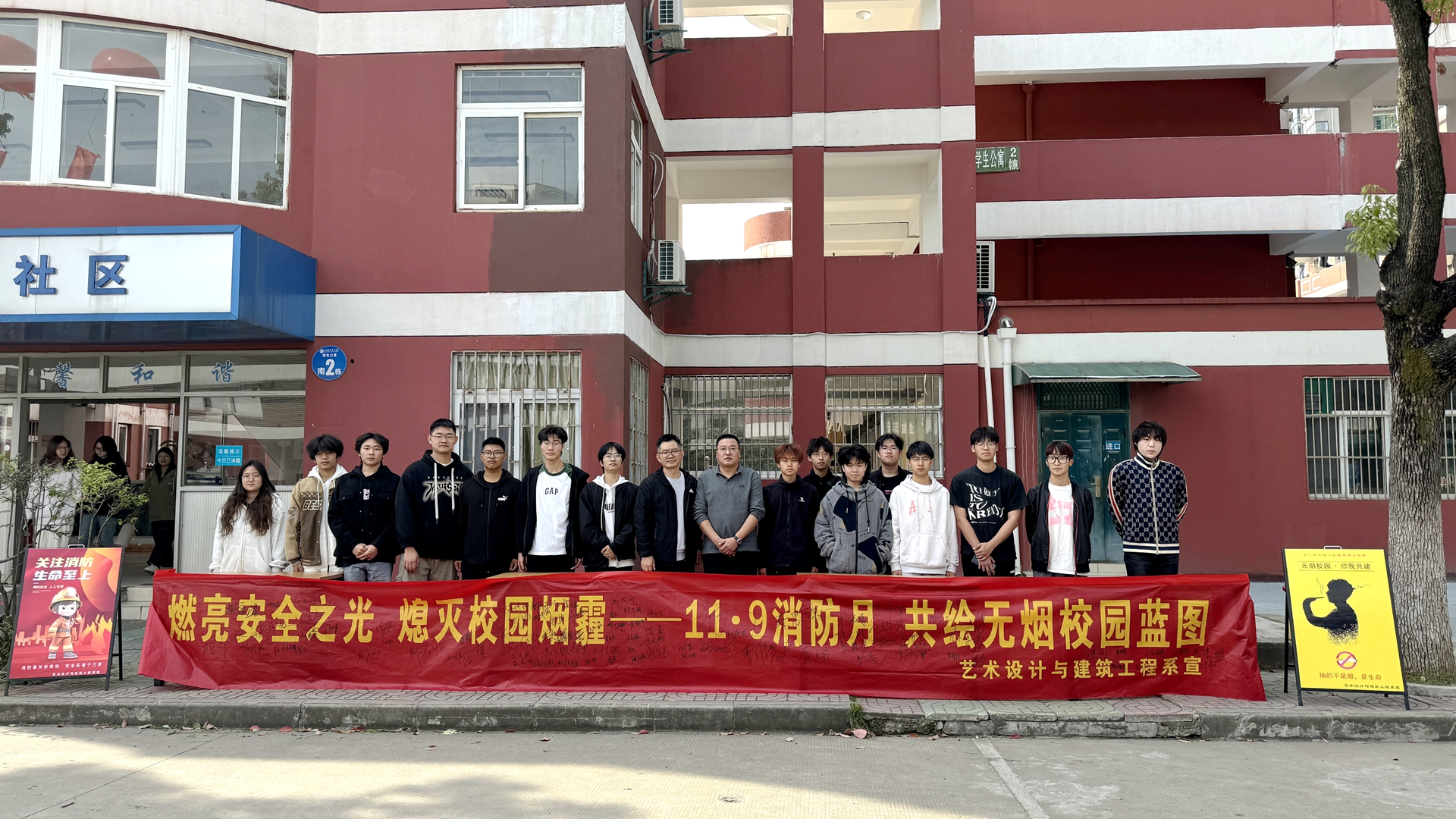 正值第33个全国消防日如期而至,艺术设计与建筑工程系积极响应国家关于提升全民消防安全意识和学院推进控烟工作的号召,11月1日-11月8日举办了一系列丰富多彩的消防宣传月与学院控烟活动,旨在通过教育与实践相结合的方式,进一步提升师生安全意识,构建安全、健康、和谐的校园环境。