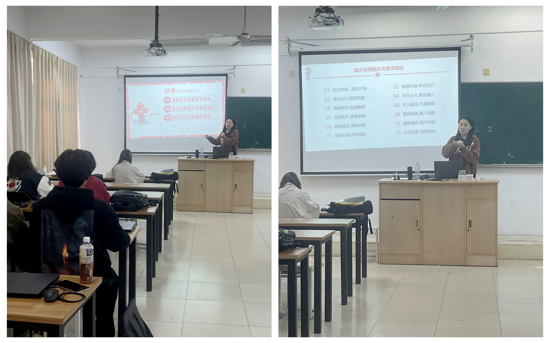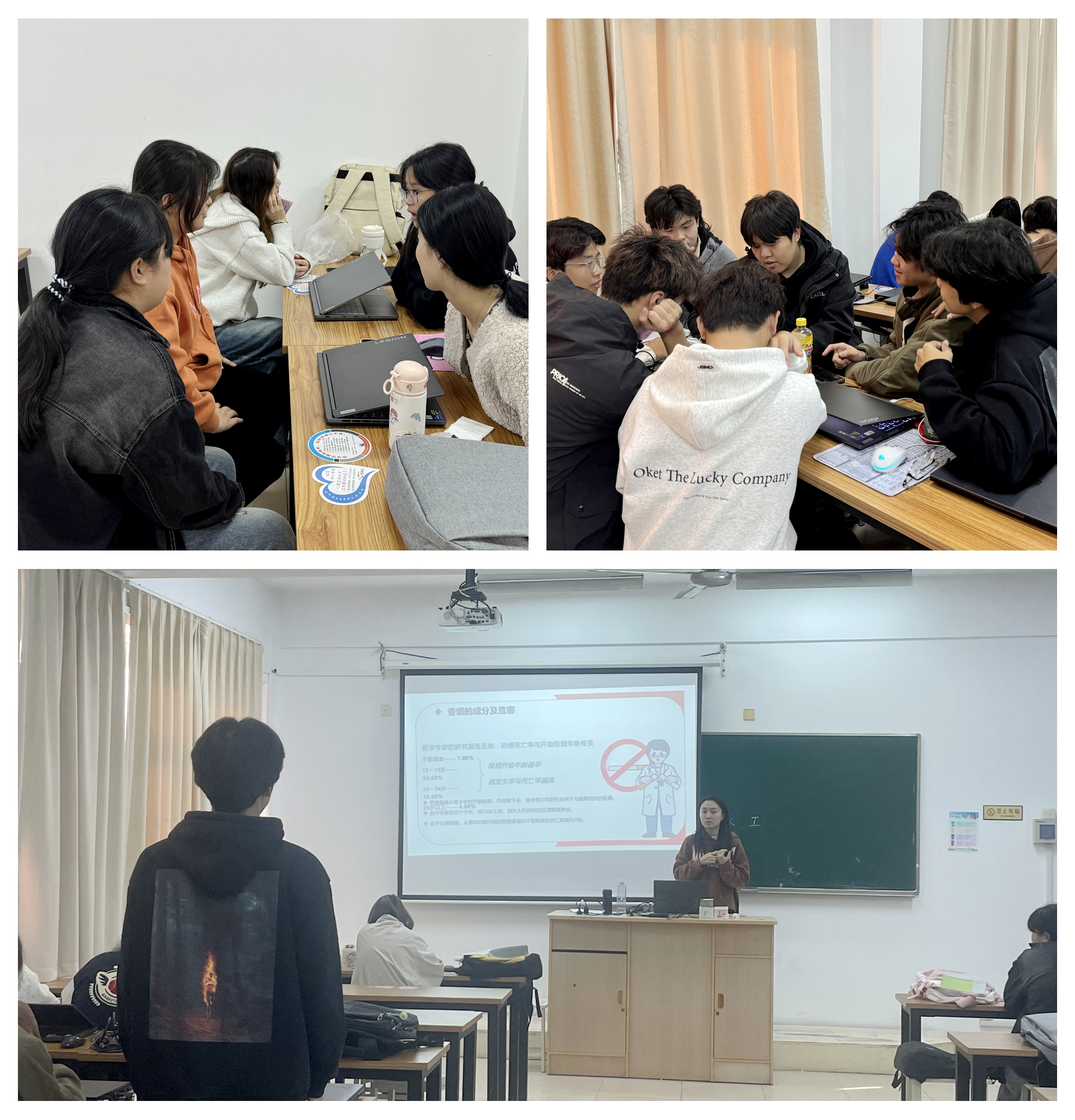 本次活动以“燃亮安全之光,熄灭校园烟霾”为主题,将消防安全教育与控烟宣传紧密结合,形成了独特的活动特色。辅导员魏玮老师通过召开主题班会向同学们详细讲解了火灾的危害性、火灾的预防措施、火灾发生时的逃生技巧以及消防器材的使用方法等消防安全知识。通过生动的案例分析和图文并茂的展示,同学们深刻认识到了消防安全的重要性,进一步增强了防范火灾的意识。同时通过宣讲和讨论,让学生们认清了吸烟的危害,消除了在吸烟认识上的误区。同学们围绕“为什么要控烟”、“吸烟对个人和社会的危害有哪些”、“如何有效控烟”等话题展开了热烈讨论。大家纷纷表示,吸烟不仅危害自身健康,还会影响周围人的生活质量,甚至可能引发火灾等安全隐患,控烟不仅是个人行为的选择,更是社会责任的体现。