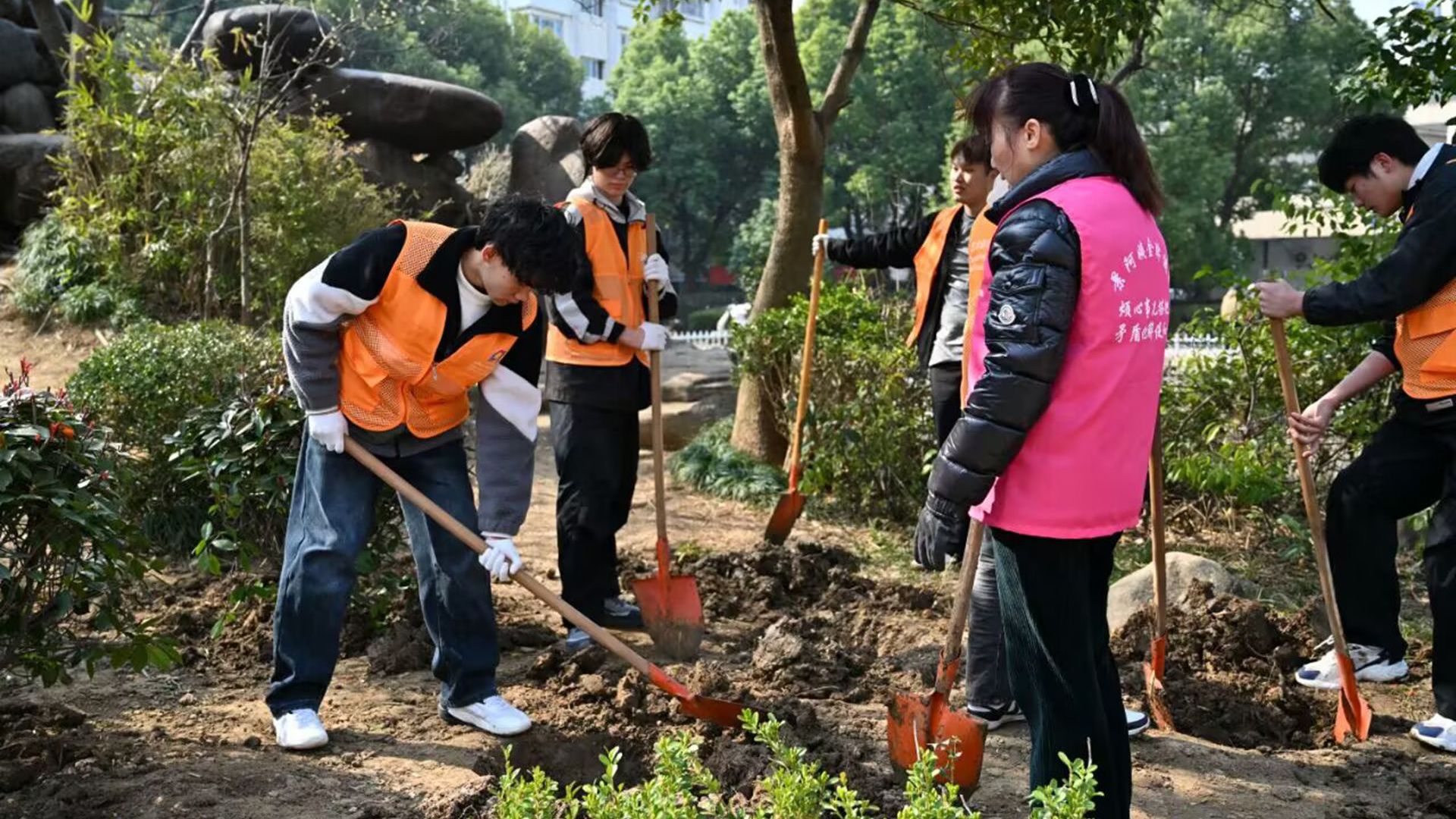 活动当天,来自艺建系的16名志愿者们在社区的党群服务中心集合,听取了社区工作人员对志愿活动内容的介绍。随后,志愿者们分组进行种植,每个人都全力以赴,将汗水洒在了这片充满希望的土地上。尽管烈日炎炎,但志愿者们的热情丝毫未减,他们用心地栽种每一株新苗,用实际行动为社区增添了一抹新绿。