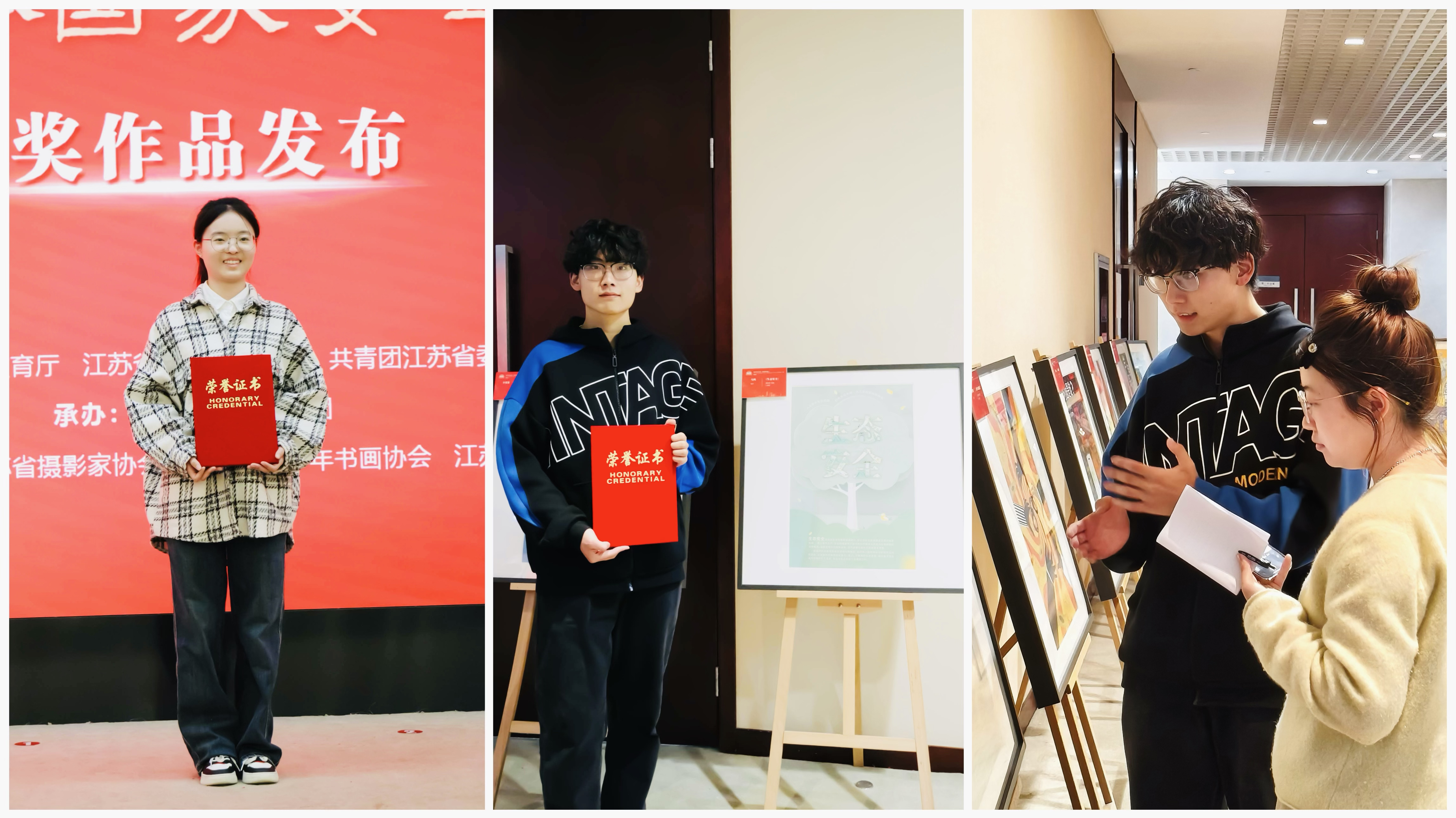 近日,由省委宣传部、省教育厅、省文化和旅游厅、团省委等多部门联合举办的 “第二届青少年总体国家安全观主题艺术创作大赛” 获奖名单正式揭晓。av在线 艺术设计与建筑工程系学生李楚潇、马鸣表现卓越,凭借各自作品《舌尖上的安全》《生态安全》,在全省 126 所高校选送的 2300 多件参赛作品中脱颖而出,分别荣获二等奖与三等奖。4 月 14 日,两位同学受邀出席颁奖典礼,他们在典礼上展现出的专业素养与家国情怀,彰显了av在线 学子的风采。省委副秘书长仲红岩,省委宣传部副部长公永刚,省教育厅二级巡视员李金泉,省文化和旅游厅党组成员、副厅长钱钢,共青团江苏省委副书记张永意,省文联二级巡视员韩军等领导出席了此次活动。