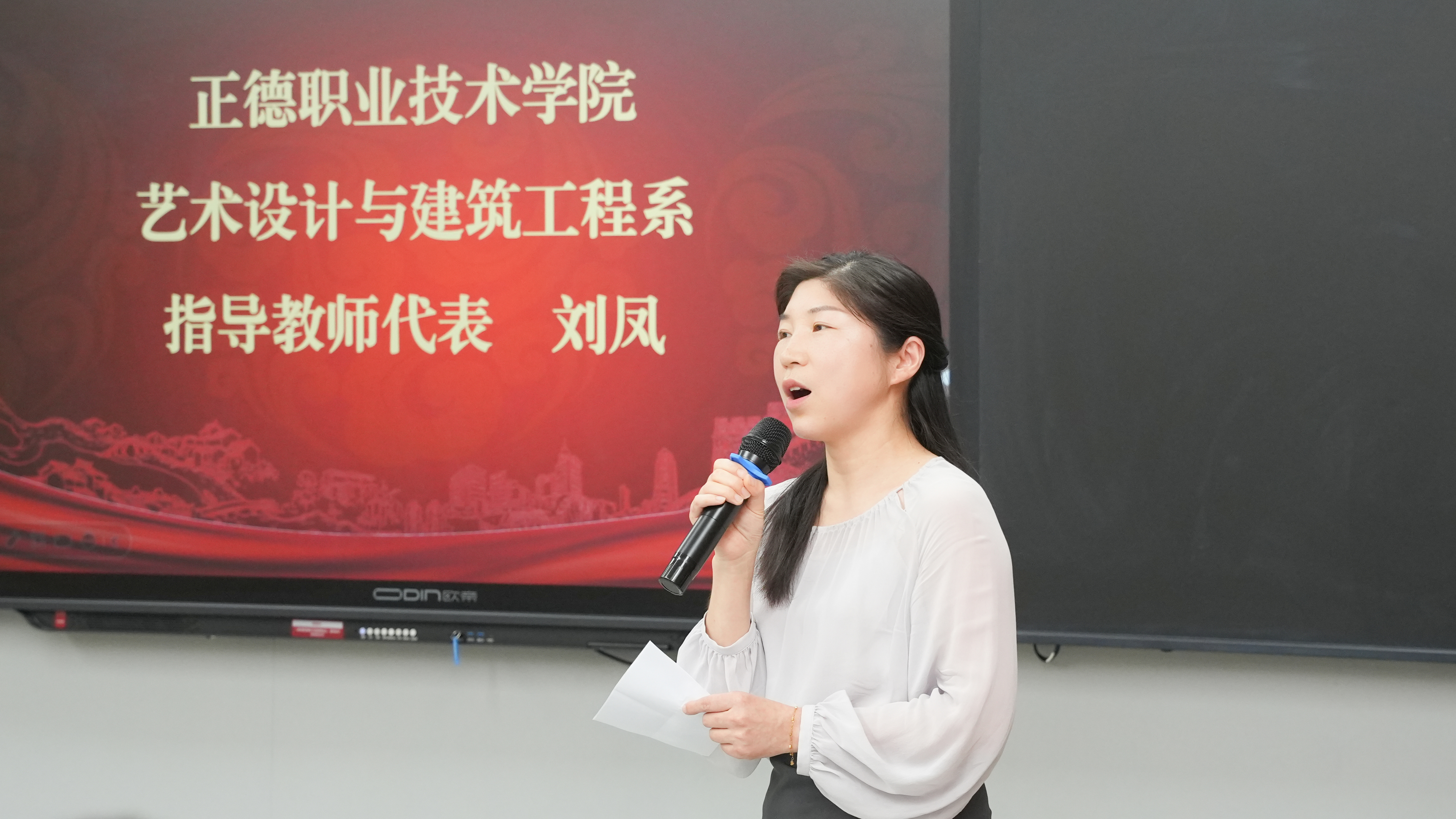 随后,获奖学生代表、指导教师代表分别作了发言。工程造价专业孙梓然同学分享自己备赛历程以及参赛心得体会。指导教师代表刘凤以“三心育人”理念为主题,回顾了训练及比赛中的点点滴滴,分享了自己的指导心得。期望来年再接再厉、再创佳绩。