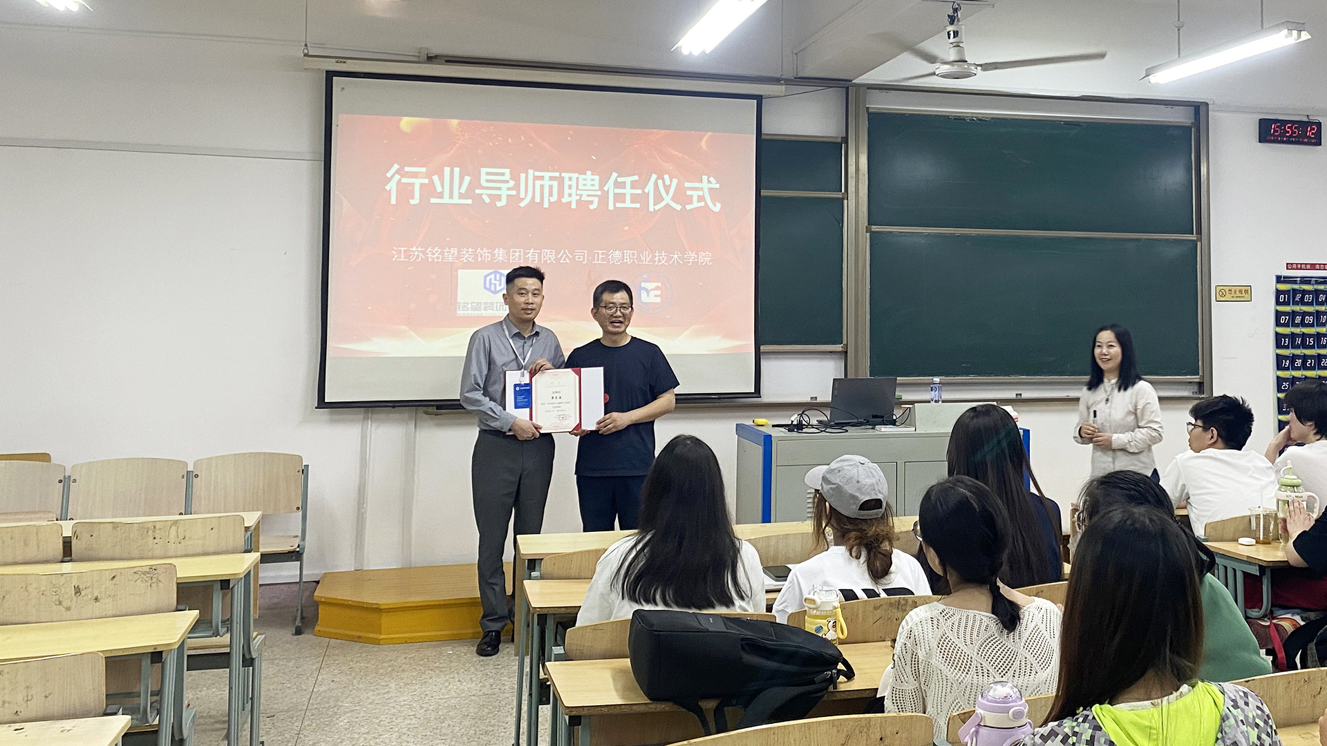 5月16日下午,艺术设计与建筑工程系举行行业导师聘任仪式,正式聘请江苏铭望装饰集团有限公司总监设计师梁东海担任我系行业导师。仪式由建筑与装饰专业群冯显静老师主持,系主任周卫、副主任陆松,铭望装饰人事主管饶书天、总监设计师吕川宁,以及环境艺术设计专业负责人马亮等出席活动。