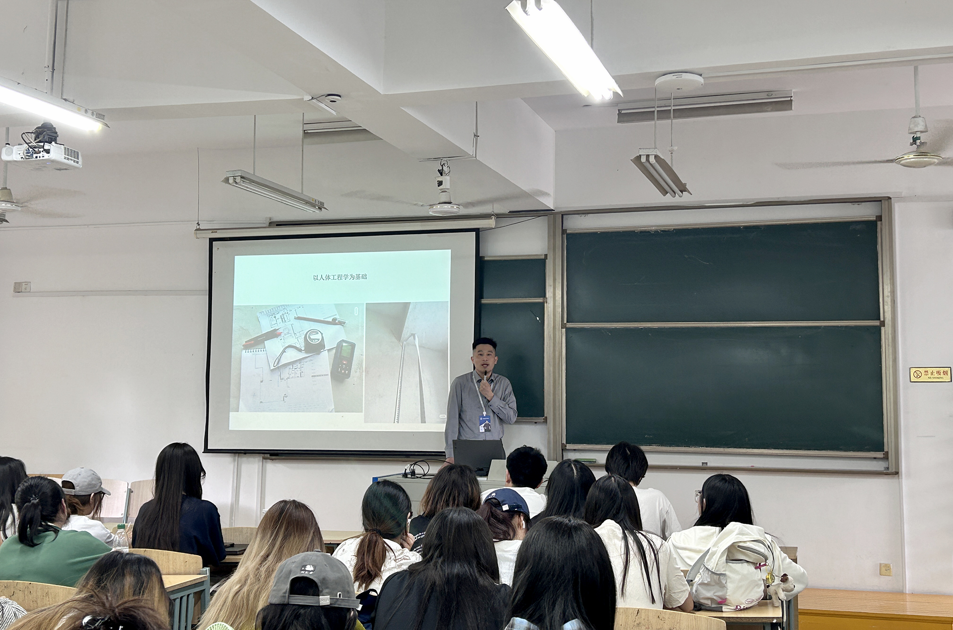 聘任仪式后,梁老师为建筑室内设计、环境艺术设计专业2023级、2024级学生带来了一场题为“设计师成长路径与职业发展”的专题讲座。梁老师通过丰富的家装设计案例,系统讲解了家装设计流程、方法理念及细节要素等专业知识。在讲解人体工程学知识时,梁老师现场示范家具尺寸测量技巧,以沉浸式教学方式引导学生互动思考。生动的案例解析使同学们对户型改造技巧和设计风格的理解更加深入透彻。
