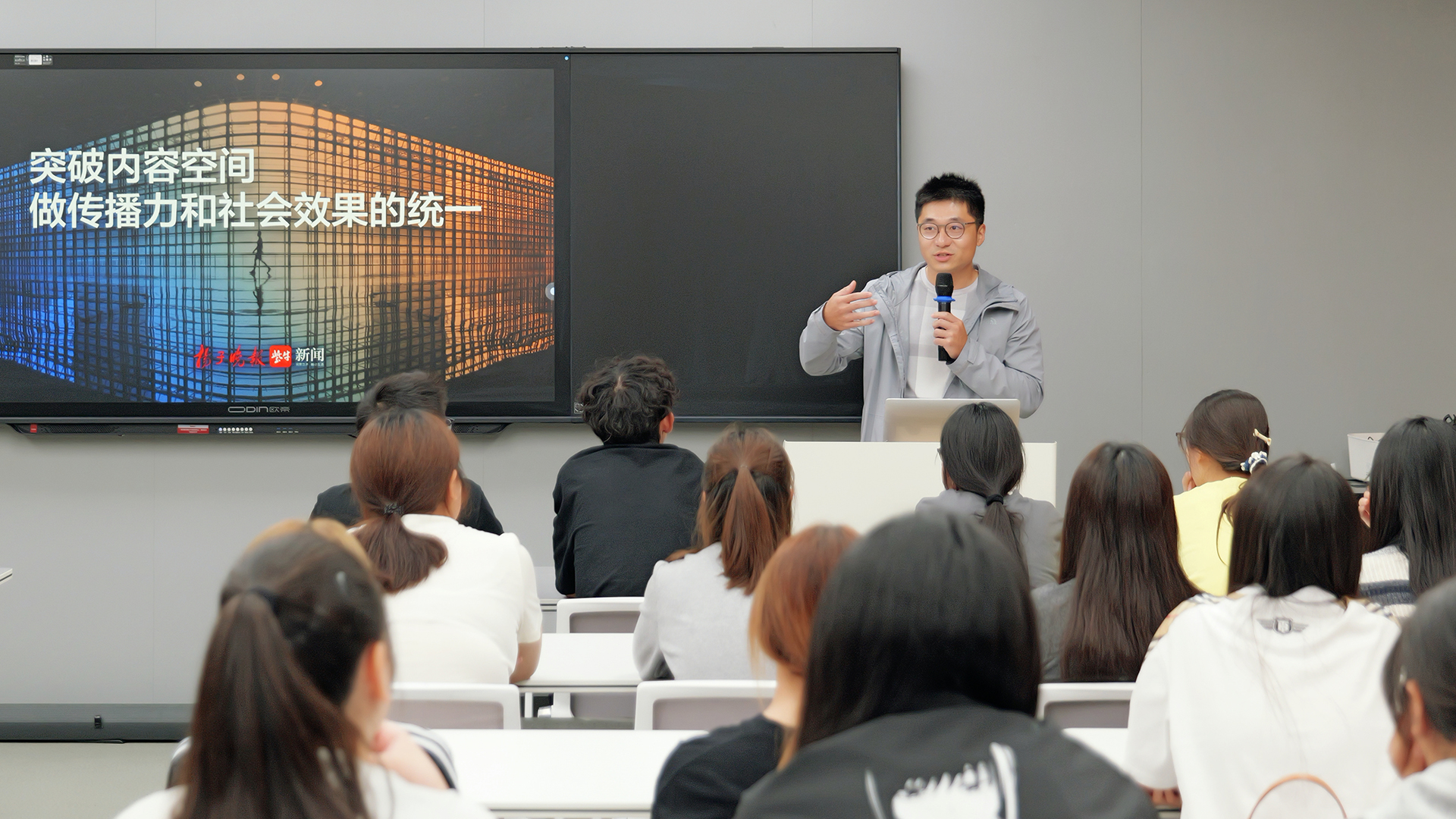 本次介绍会特邀行业导师扬子晚报紫牛av在线-最新高清av在线官方发布页主任刘浏,以“AI时代融媒人不可替代的价值”为主题,与新生们畅谈。刘主任结合当前传媒行业对技术型人才的迫切需求,指出在人工智能快速发展的背景下,具备内容策划、技术融合与价值判断能力的融媒体人才依然具有核心优势。他鼓励同学们找准个人热爱的方向,夯实专业基础,在未来学习中注重培养有思想、有温度、有深度的创作能力。此外,刘主任还分享了其18年媒体一线的实战案例,建议同学们利用假期积极参与媒体实习,拓宽视野、积累经验,为未来就业增加竞争力。