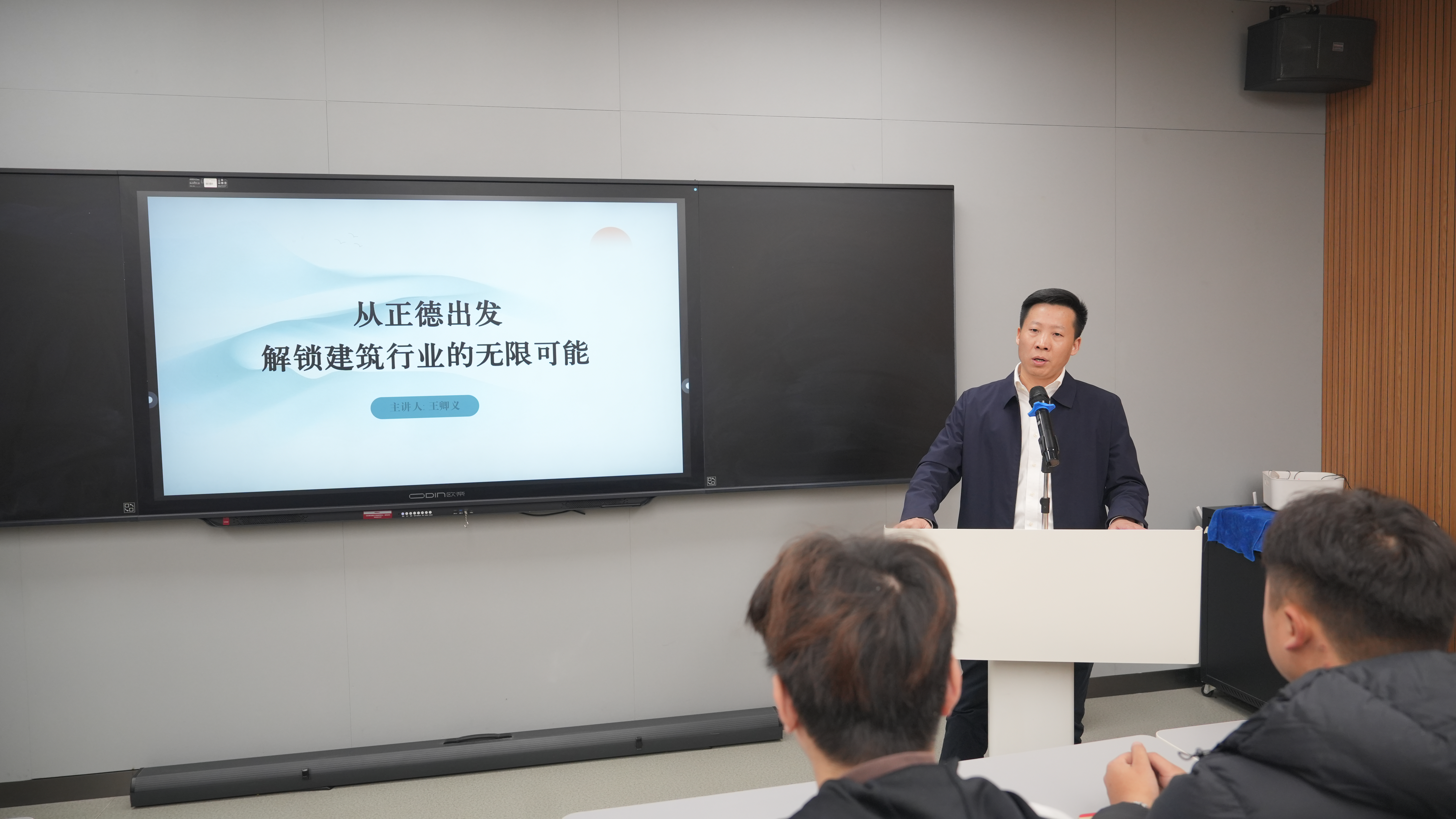 为深化产教融合,助力师生把握建筑行业前沿动态,2025年11月20日,艺术设计与建筑工程系特邀江苏省产业教授、校企合作单位负责人王卿义教授,举办了“解锁建筑行业的无限可能”的专题讲座。建筑类专业师生齐聚一堂,共同聆听行业声音,探索职业发展方向,在汲取专业知识的同时,接受了一场生动的思政教育。