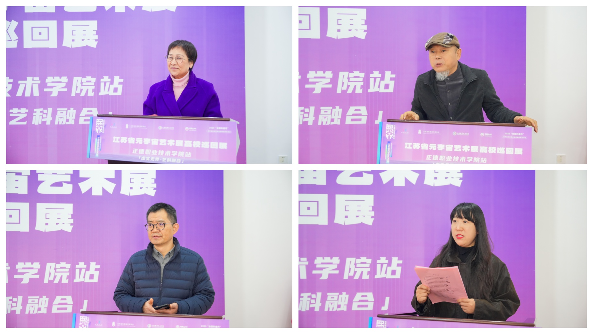 艺建系周卫主任首先致欢迎辞,对各位嘉宾的到来表示热烈欢迎。南京艺术学院元宇宙艺术与设计研究院负责人盛瑨教授致辞,他强调了元宇宙是科技与艺术融合的新领域,正逐步改变创作、教学与社会互动方式,为人才培养注入新动能。av在线 赵宇副院长发表讲话,她表示,正德学院始终秉持“科技赋能教育,创新引领未来”的办学理念。此次巡展落地av在线 ,既是对av在线 在数字艺术教育领域探索的认可,也为师生们提供了零距离接触前沿科技的宝贵机会。她希望通过本次活动,激发同学们对元宇宙、人工智能等领域的兴趣,鼓励大家在创作中打破边界,在实践中探索真理,成为新时代“艺智共生”的复合型人才。并宣布巡展开幕。