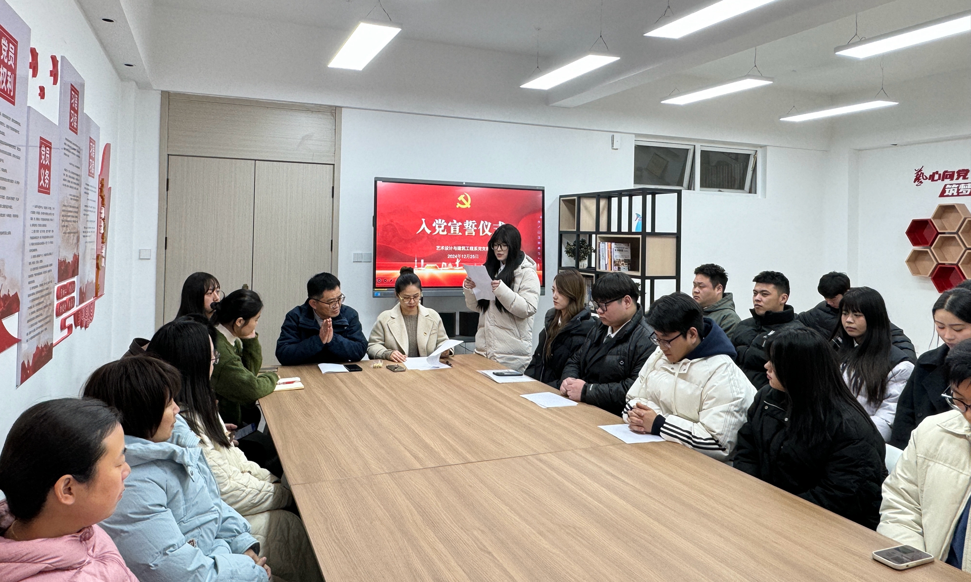 2024年12月25日下午,为切实推动新发展党员深植信仰根基、明晰党员使命、筑牢精神支柱,并全力彰显先锋引领力量,艺术设计与建筑工程系在8202“艺心之家”活动室隆重举行了一场意义深远的新党员入党宣誓仪式。此次仪式由系党支部书记杨春娟主持,出席仪式的领导包括系党支部书记、系主任、全体支委委员、系第二党小组全体成员、11名新发展的预备党员以及入党积极分子代表。