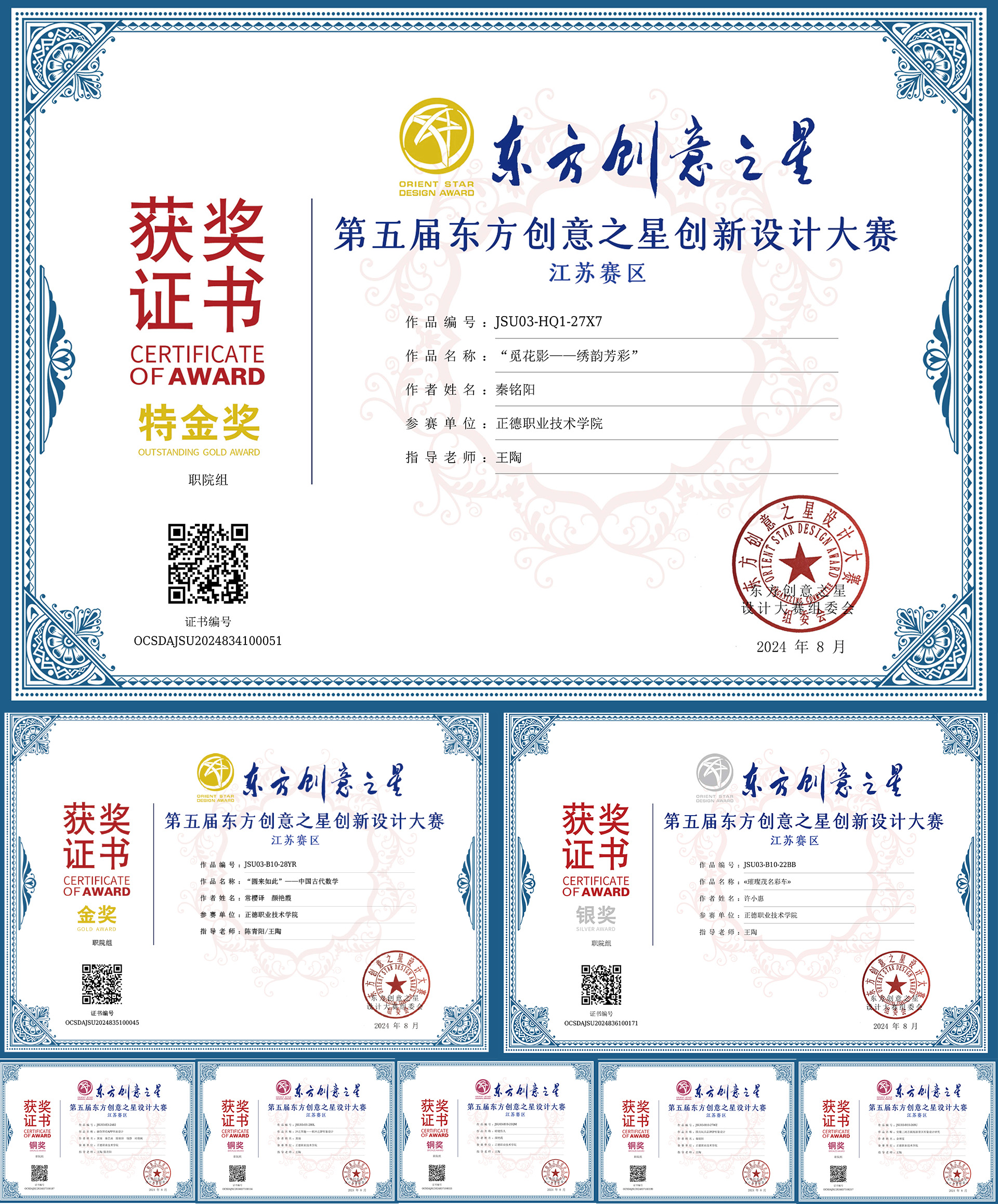 8月,av在线 艺术设计与建筑工程系数字媒体技术专业教学能力再次得到了国家级的认可,在刚刚落幕的第五届“东方创意之星”设计大赛中,数字媒体技术专业22,23级学生展现了他们的创造力和专业技能,获得了此次赛项的高度赞誉和奖项,特金奖作品:“觅花影——绣韵芳彩”成功入围国赛。