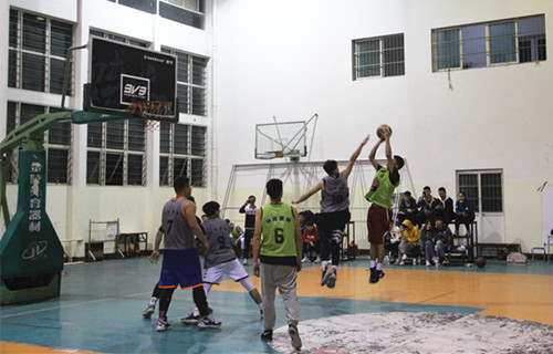 本次比赛是“曙光杯”篮球系列赛中的热身赛。学生经过精挑细选,不分系别,不限年级,自由组合,分成了黄、绿、橙、灰四支代表队。比赛五分钟一局,分高或先得11分者为胜,五局三胜。比赛中,队员们斗志昂扬,齐心协力,坚持不懈,最终黄队(陈允龙、包浩男、刘壮壮)3-1战胜灰队(郭远航、周一帆、吴昕磊)。