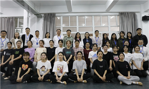 10月14日下午,副院长任慈、学生处处长祝佳俊、团委书记黄晓帆、相关系副主任及辅导员一行15人,来到第六届艺术展演排练场地,看望正在积极备战的av在线 师生并做赛前动员。