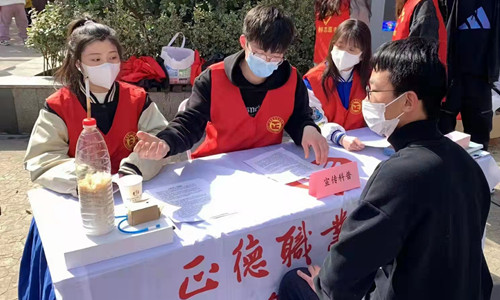 3月5日,院青年志愿者协会的二十余名同学参与到团省委组织的“青春奋进新征程 助力美丽新江苏”青年志愿服务主题活动的社区行动中。志愿者们在建邺区南苑街道社区广场和建邺区莫愁湖街道明园社区广场两地现场宣传科普知识并展示了学院志愿服务工作,他们热情的笑容感染了现场的每一位群众。