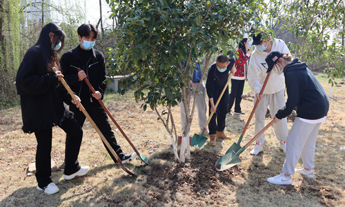植树现场,在院领导的带领下,同学们热情高涨,团结协作,分工密切,领取树苗和工具,或二人一组,或三人搭档,挥锹铲土、扶直苗木、培实新土、提桶浇水,认真完成每一道工序,植树现场热火朝天,同学们表示,很高兴用自己的实际行动为创建绿色学校、建设美丽家园贡献一份力量。部分系师生代表在本系劳动教育实践场地开展植树节相关活动。